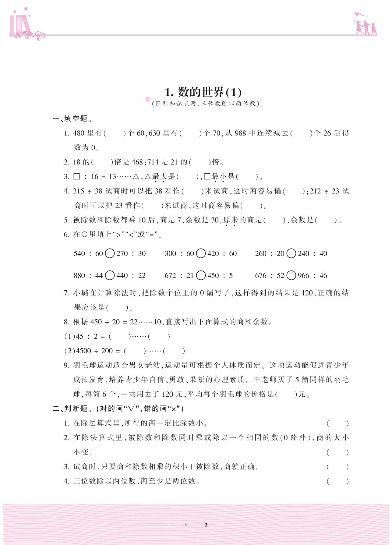 2020上册四年级数学苏教版 九 整理与复习——1. 数的世界(1)
