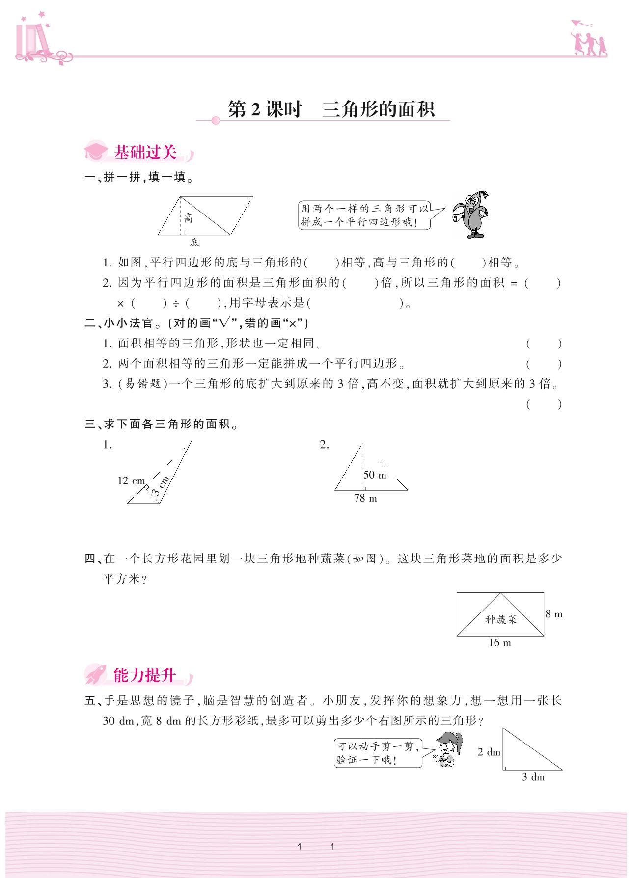 2020上册五年级数学苏教版 二 多边形的面积——第2课时 三角形的面积