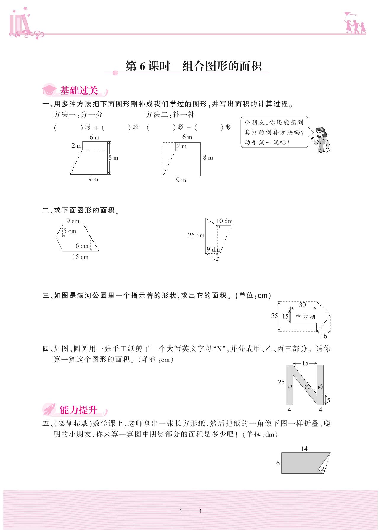 2020上册五年级数学苏教版 二 多边形的面积——第6课时 组合图形的面积