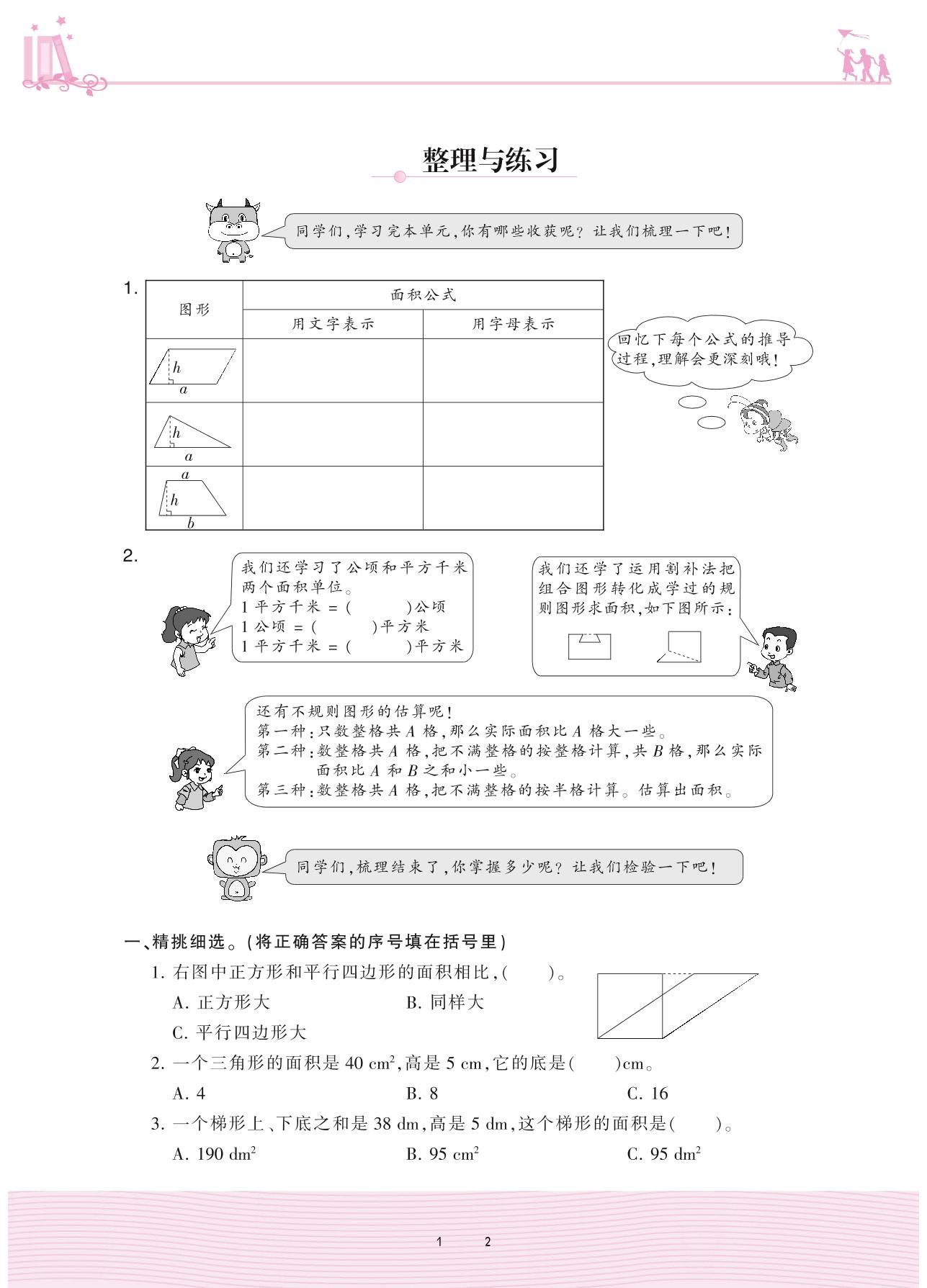 2020上册五年级数学苏教版 二 多边形的面积——整理与练习