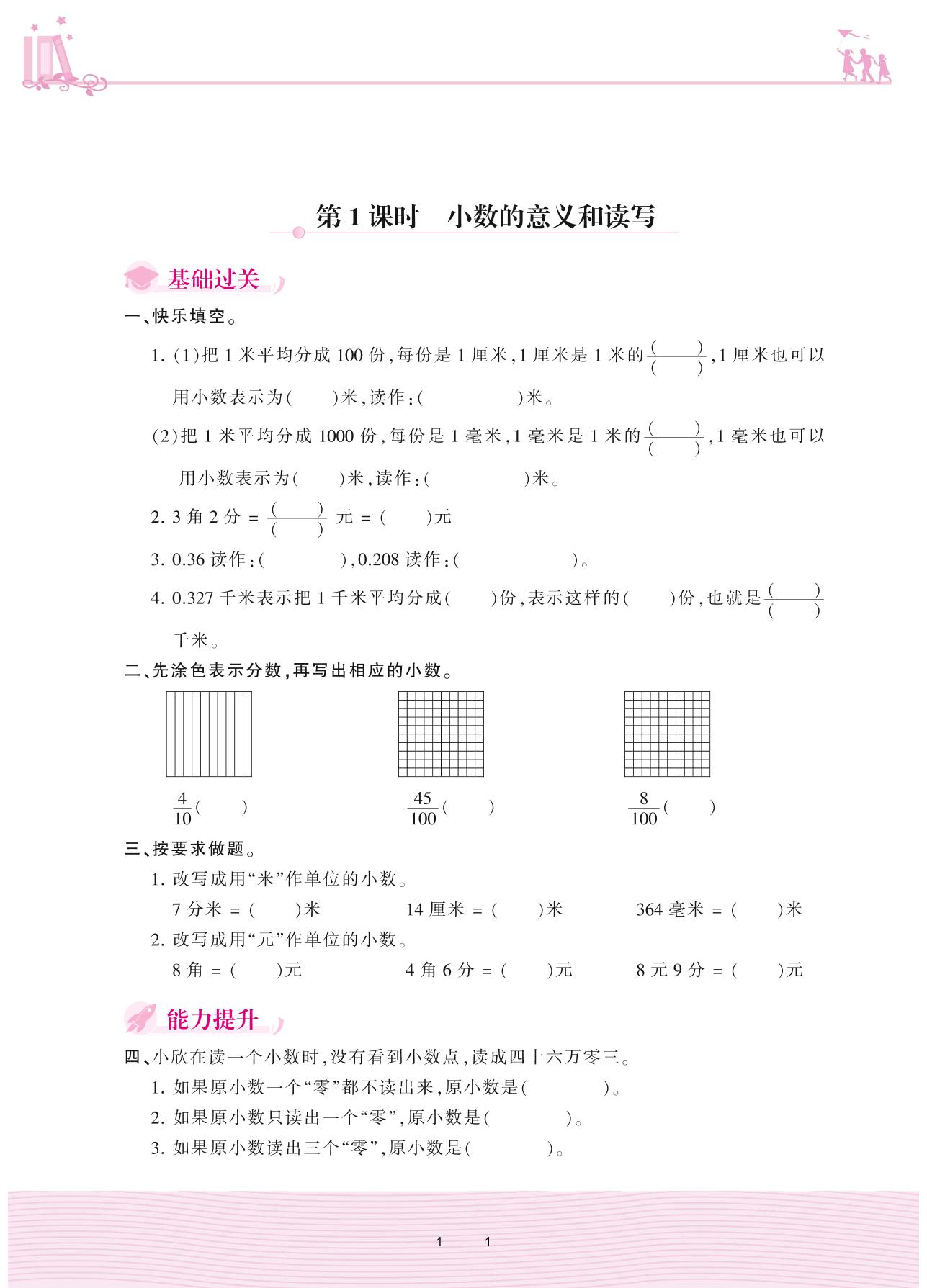 2020上册五年级数学苏教版 三 小数的意义和性质——第1课时 小数的意义和读写