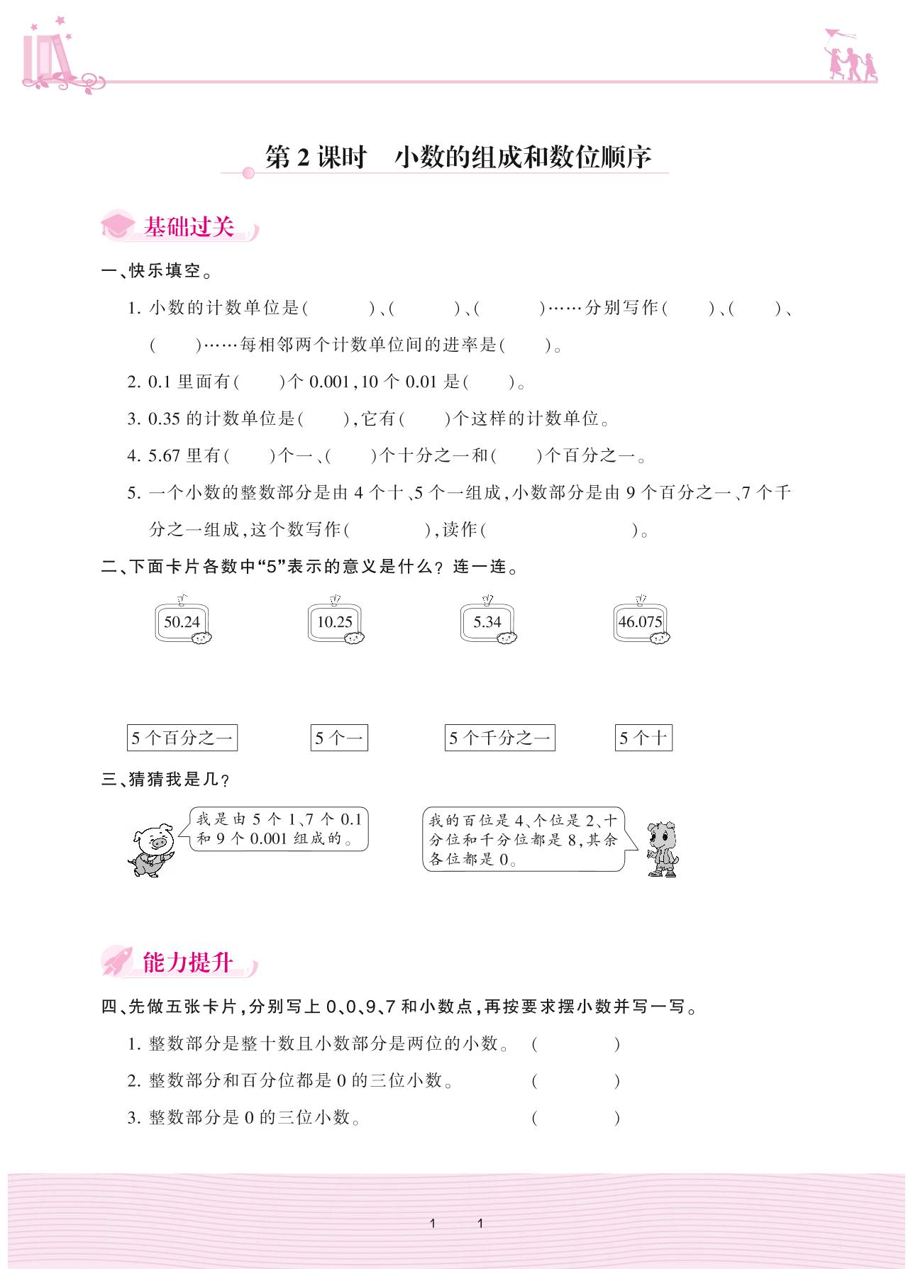 2020上册五年级数学苏教版 三 小数的意义和性质——第2课时 小数的组成和数位顺序