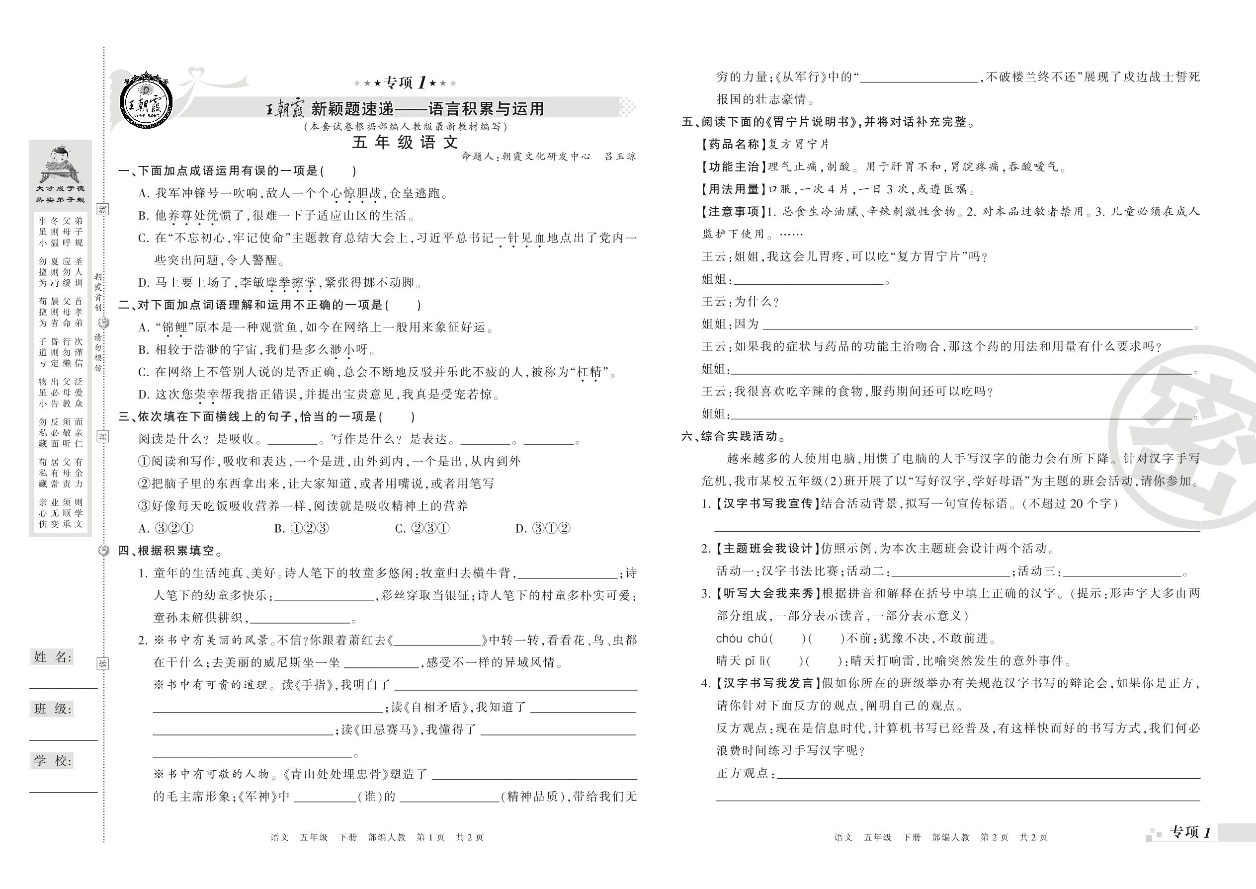 王朝霞期末专项卷——新颖题速递:语言积累与运用、非连续性文本阅读五年级下册语文(人教版)_R210801192304【0】