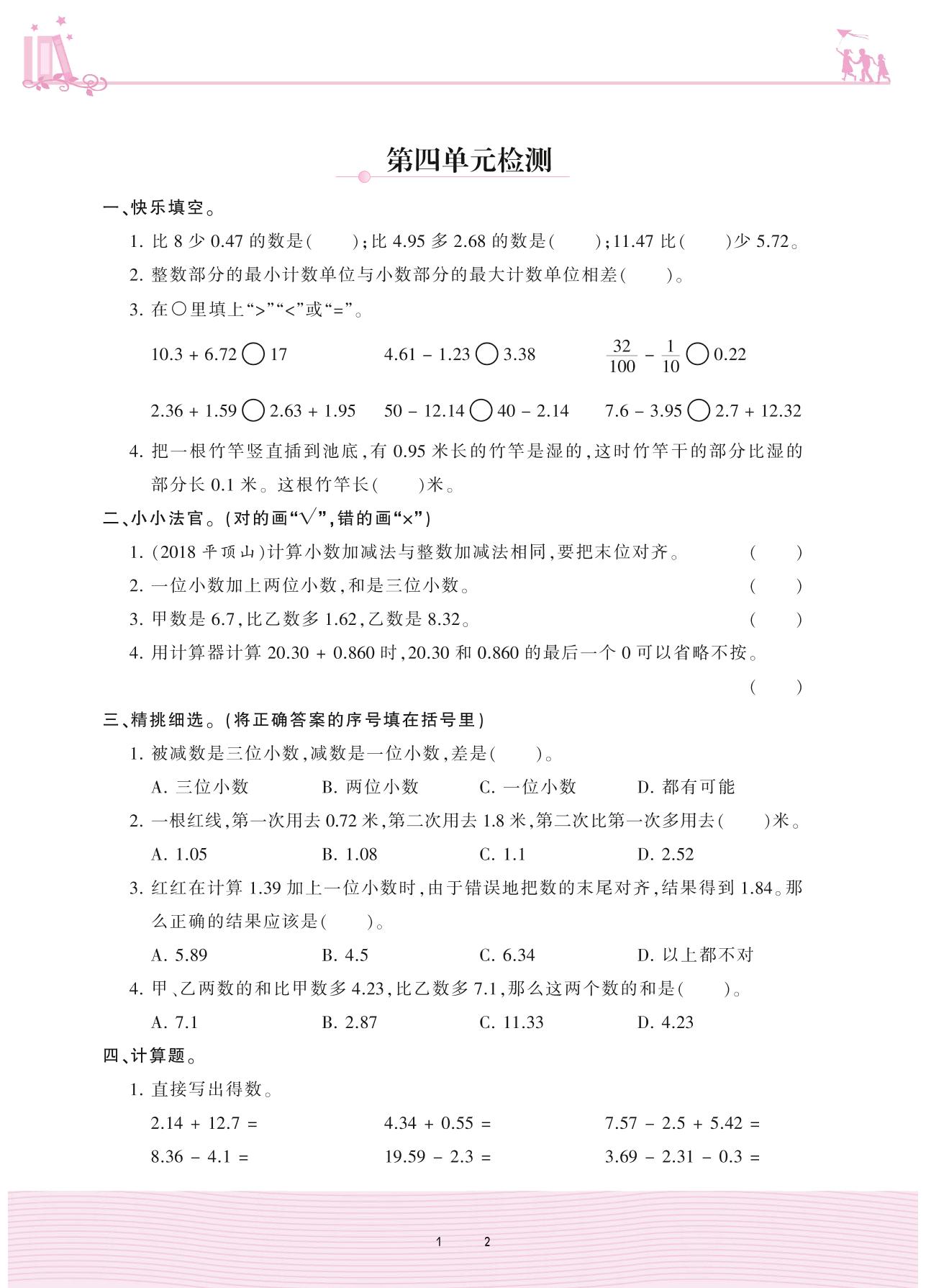 2020上册五年级数学苏教版 第四单元检测