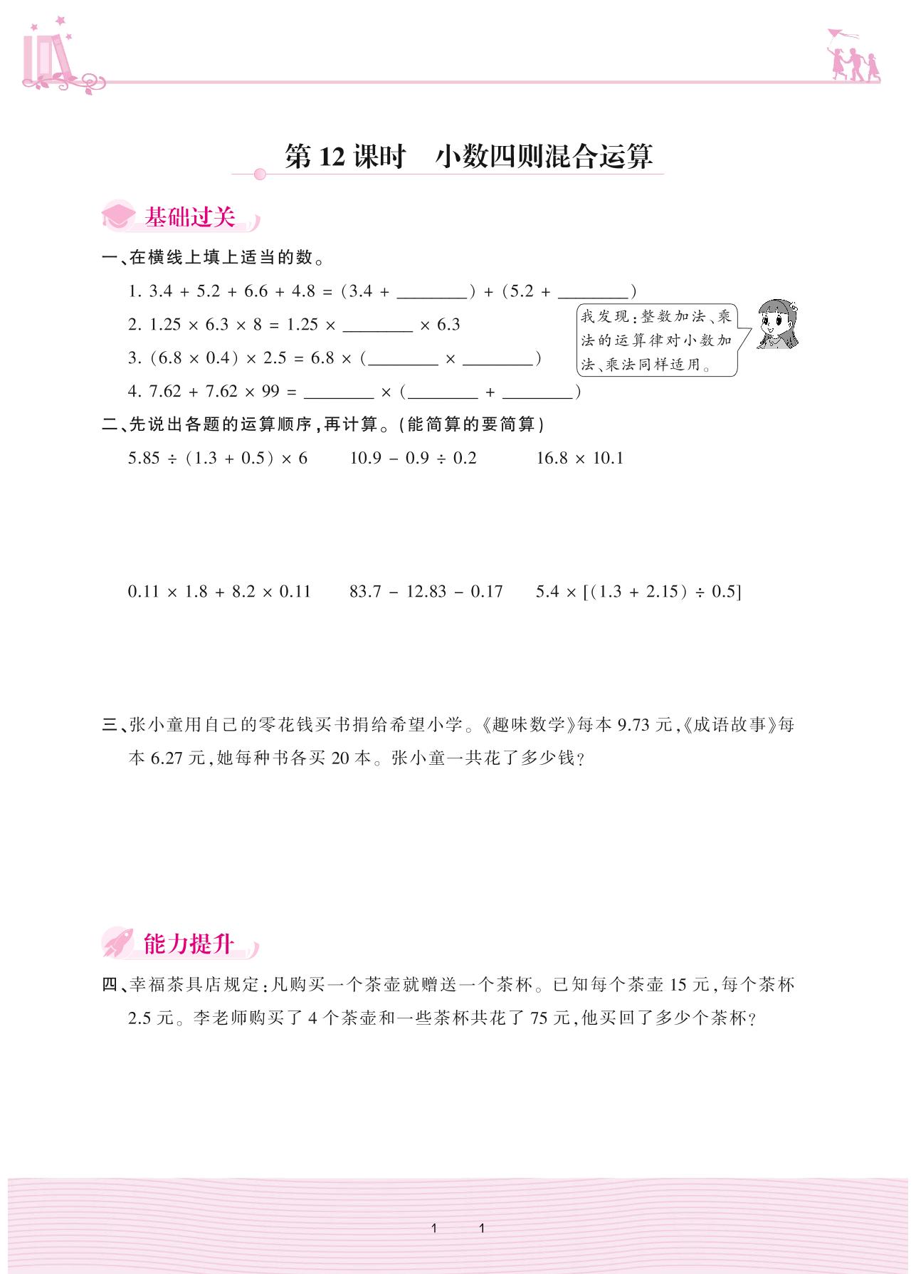 2020上册五年级数学苏教版 五 小数乘法和除法——第12课时 小数四则混合运算
