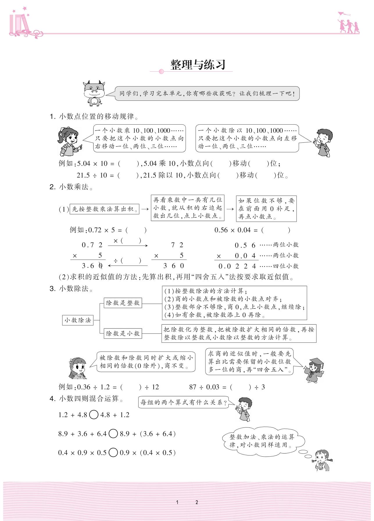 2020上册五年级数学苏教版 五 小数乘法和除法——整理与练习