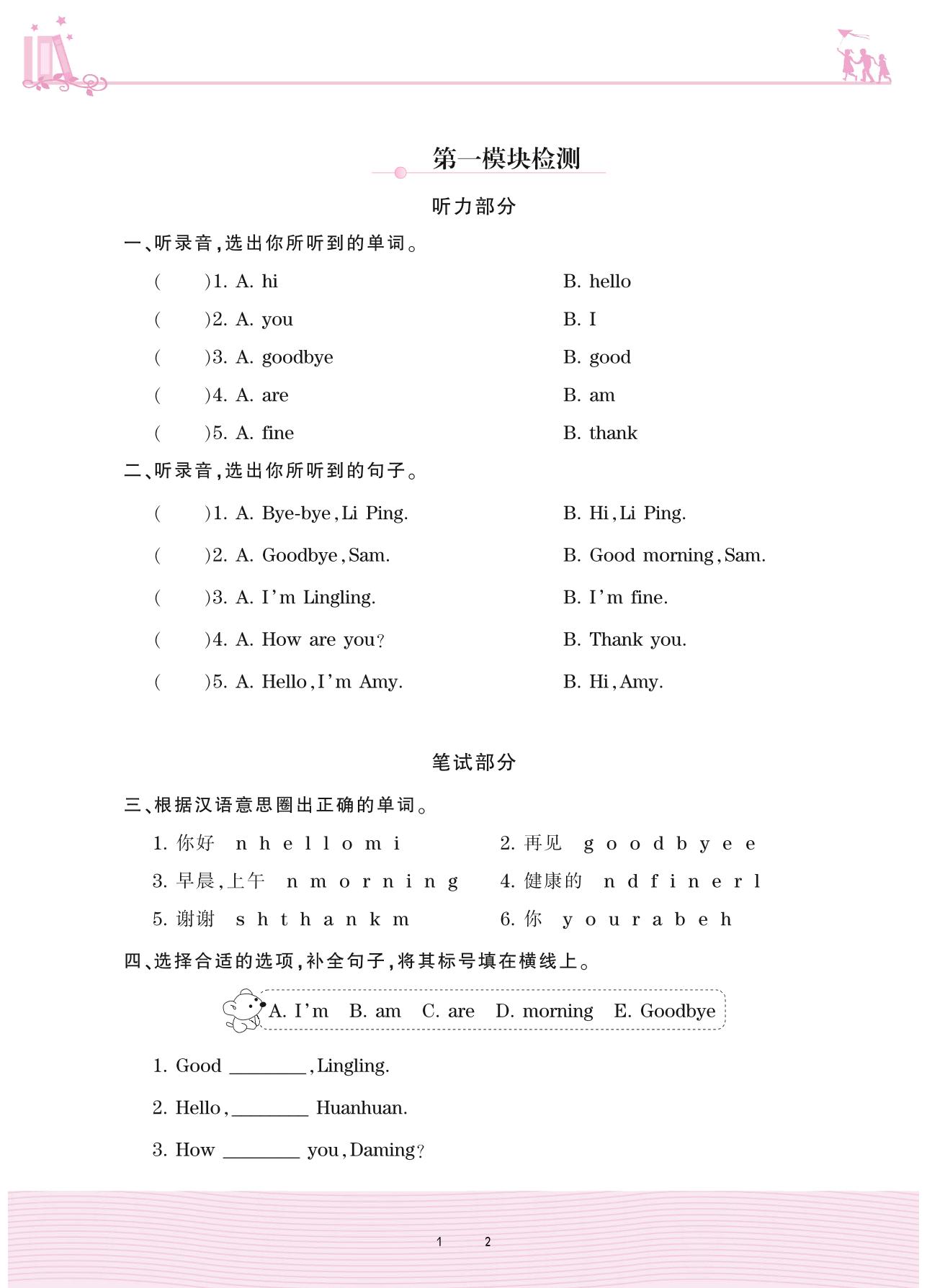 2020上册三年级英语外研版 Module 1—第一模块检测
