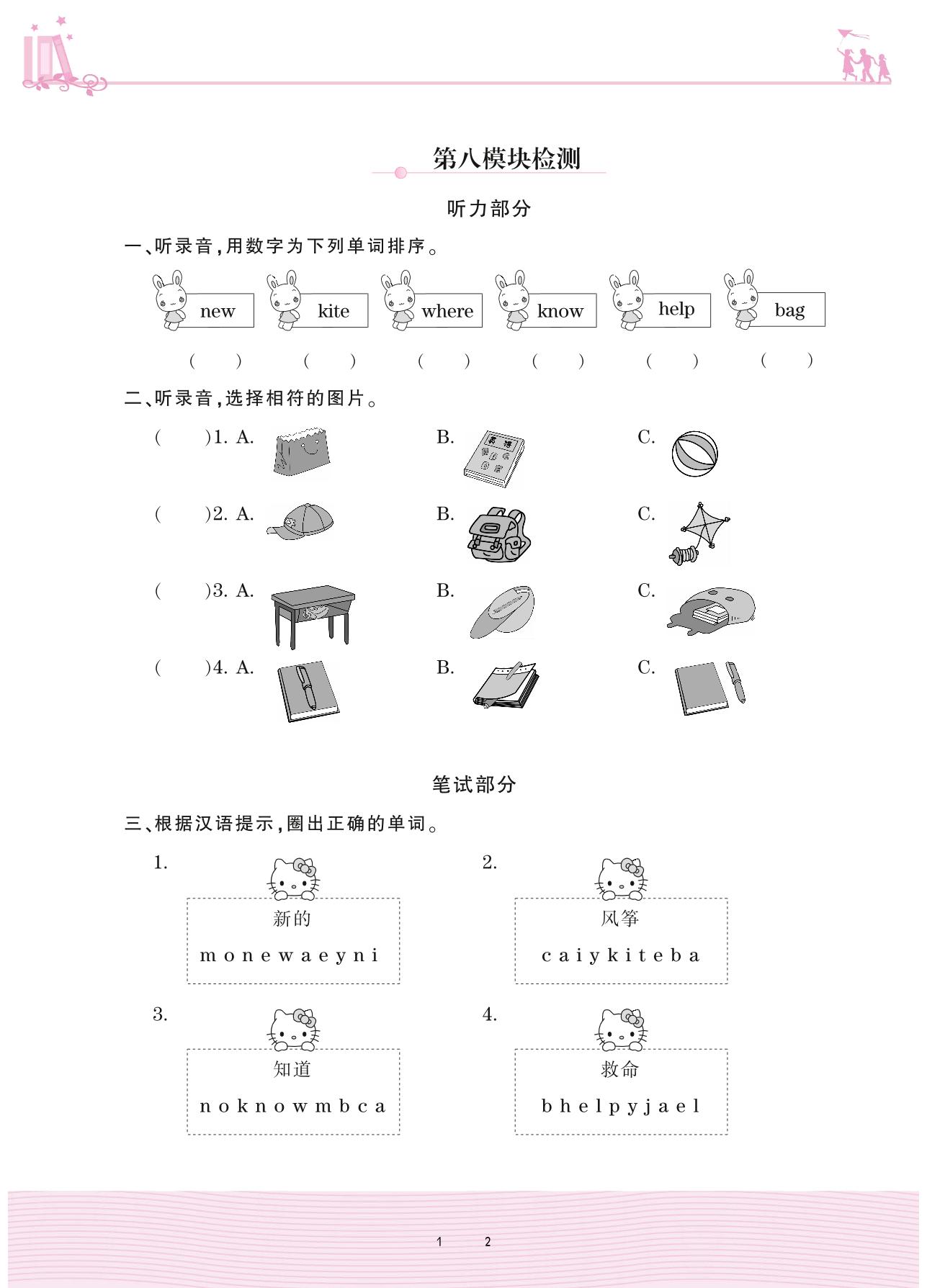 2020上册三年级英语外研版 Module 8—第八模块检测
