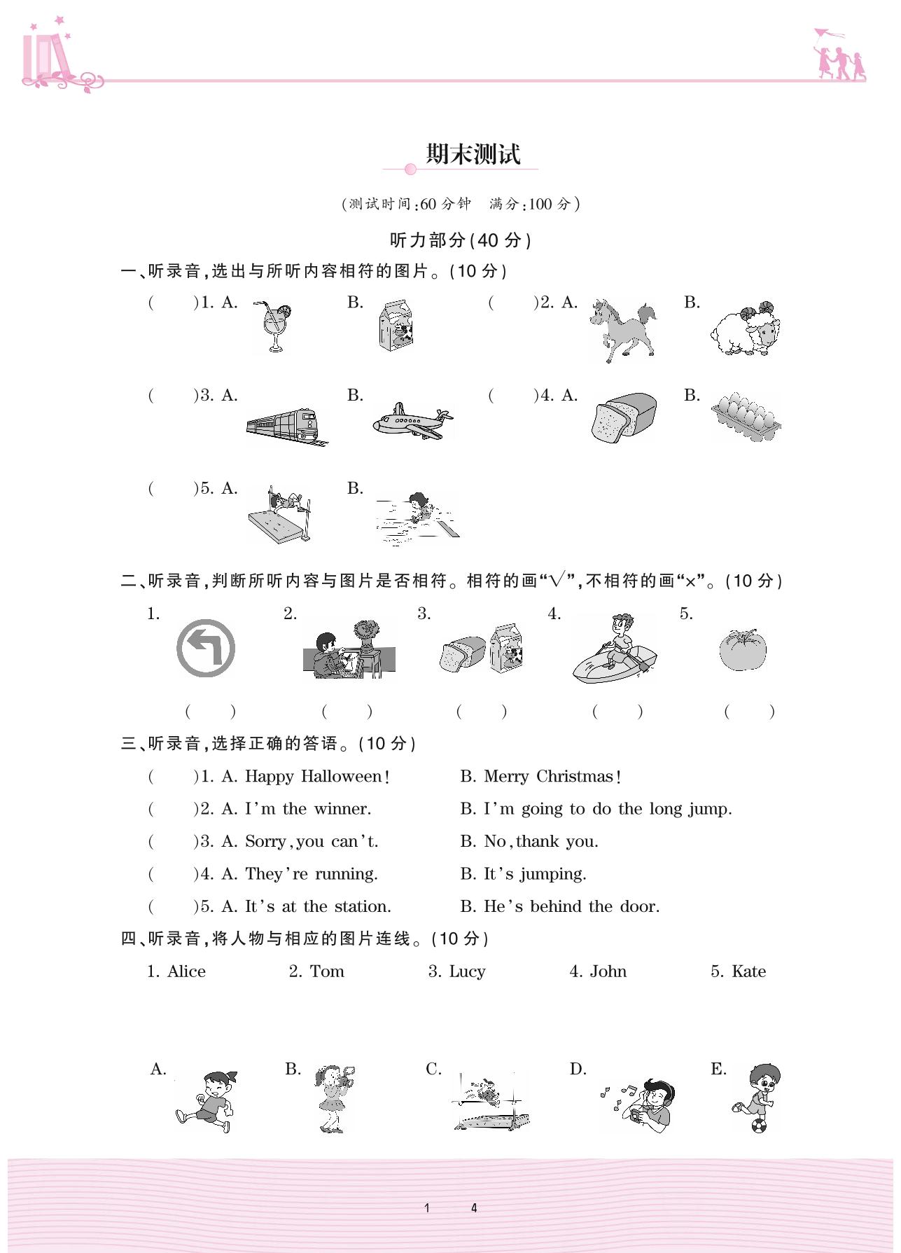 四年级英语外研版(三起始)上册期末卷