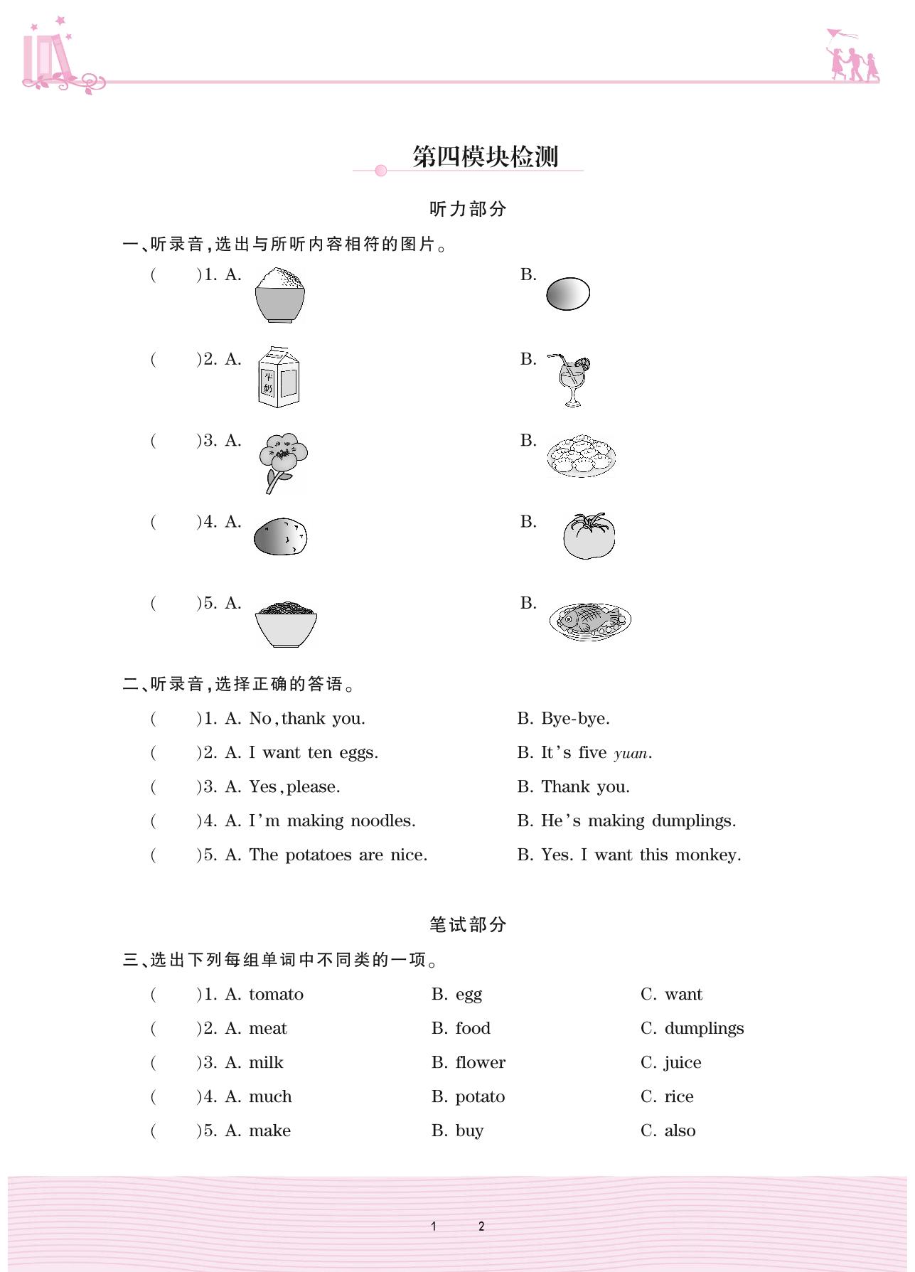 2020上册四年级英语外研版 Module 4—第四模块检测