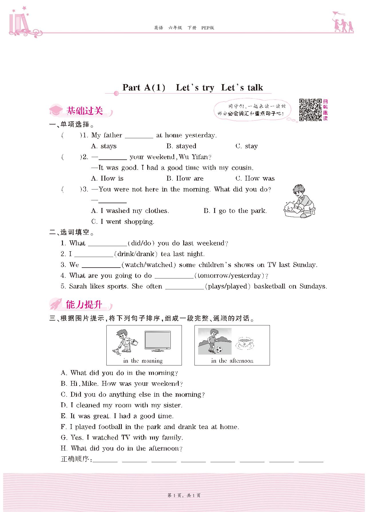 2021下册六年级英语PEP版 Unit 2—Part A(1) Let’s try Let’s talk