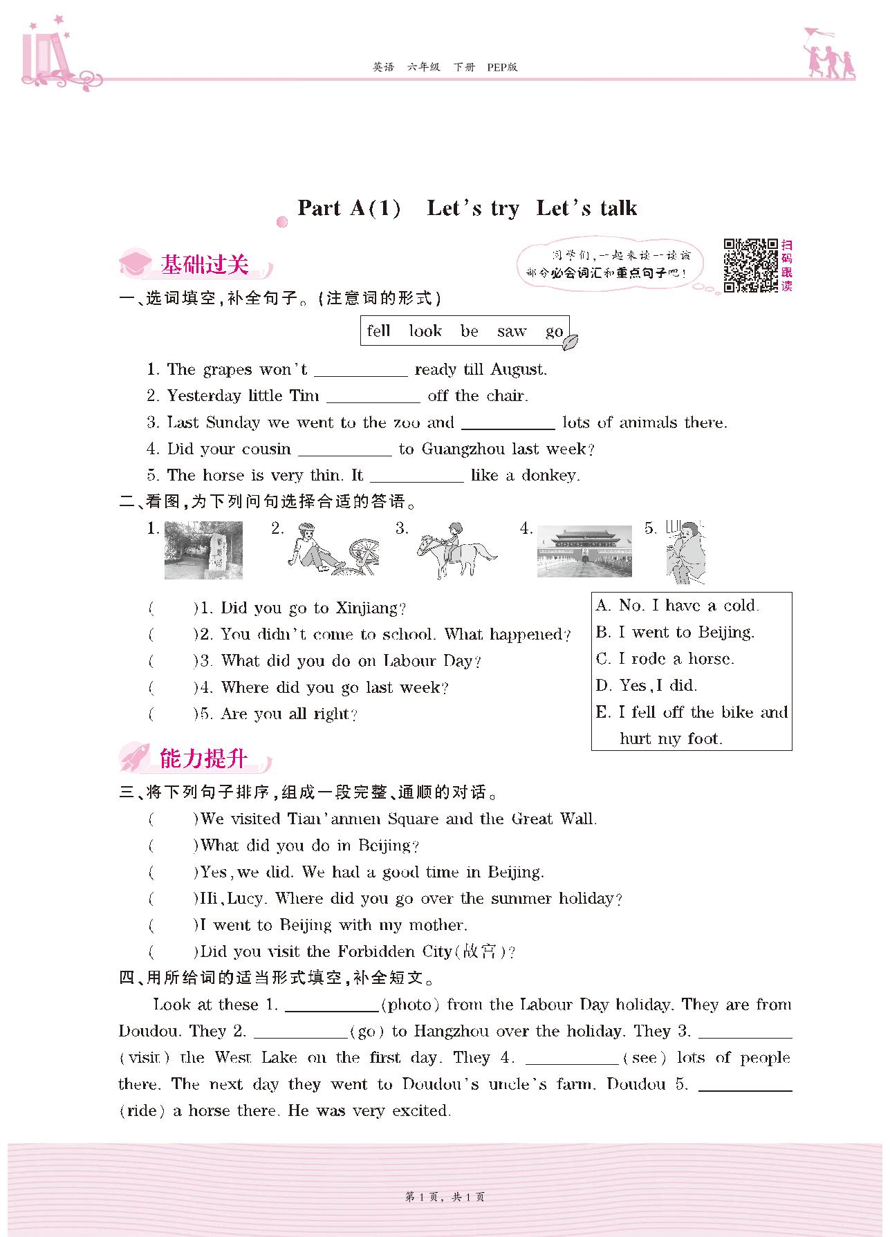 2021下册六年级英语PEP版 Unit 3—Part A(1) Let’s try Let’s talk