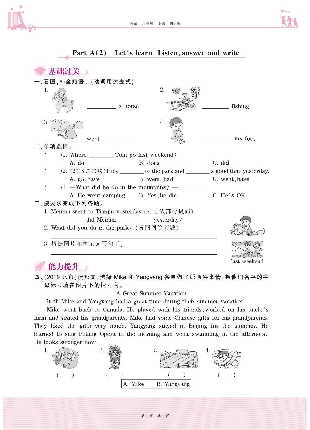 2021下册六年级英语PEP版 Unit 3—Part A(2) Let’s learn Listen,answer and write