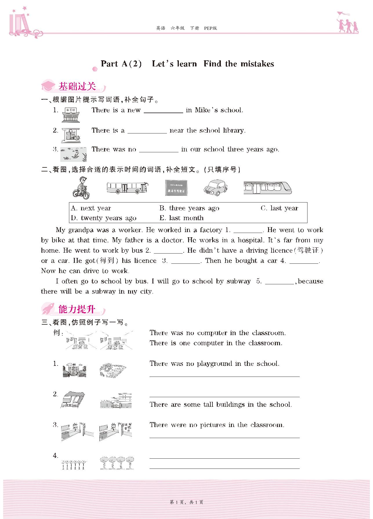 2021下册六年级英语PEP版 Unit 4—Part A(2) Let’s learn Find the mistakes