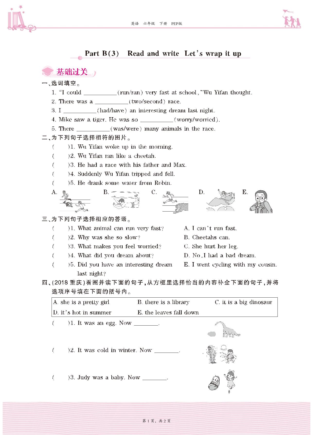 2021下册六年级英语PEP版 Unit 4—Part B(3) Read and write Let’s wrap it up