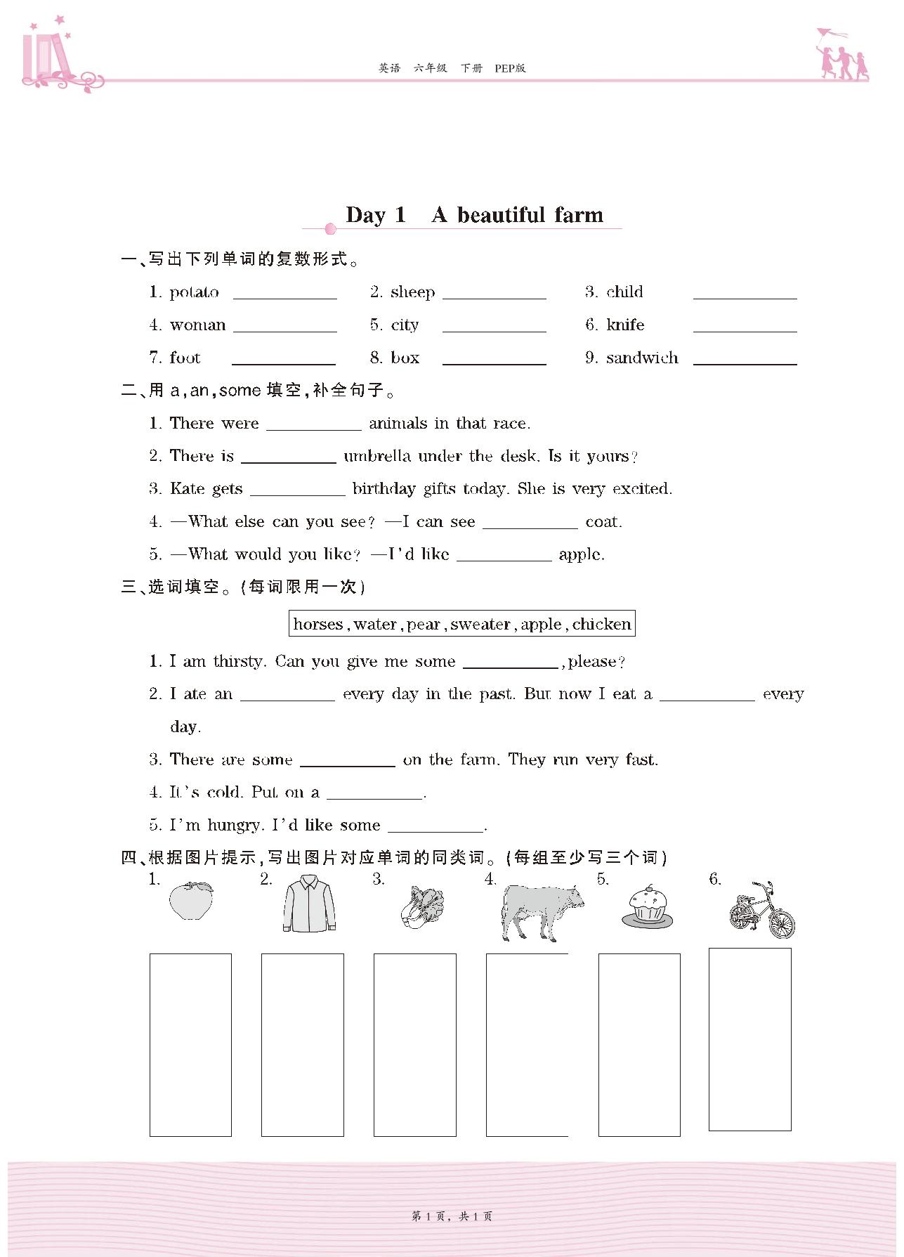 2021下册六年级英语PEP版 Recycle—Day 1 A beautiful farm