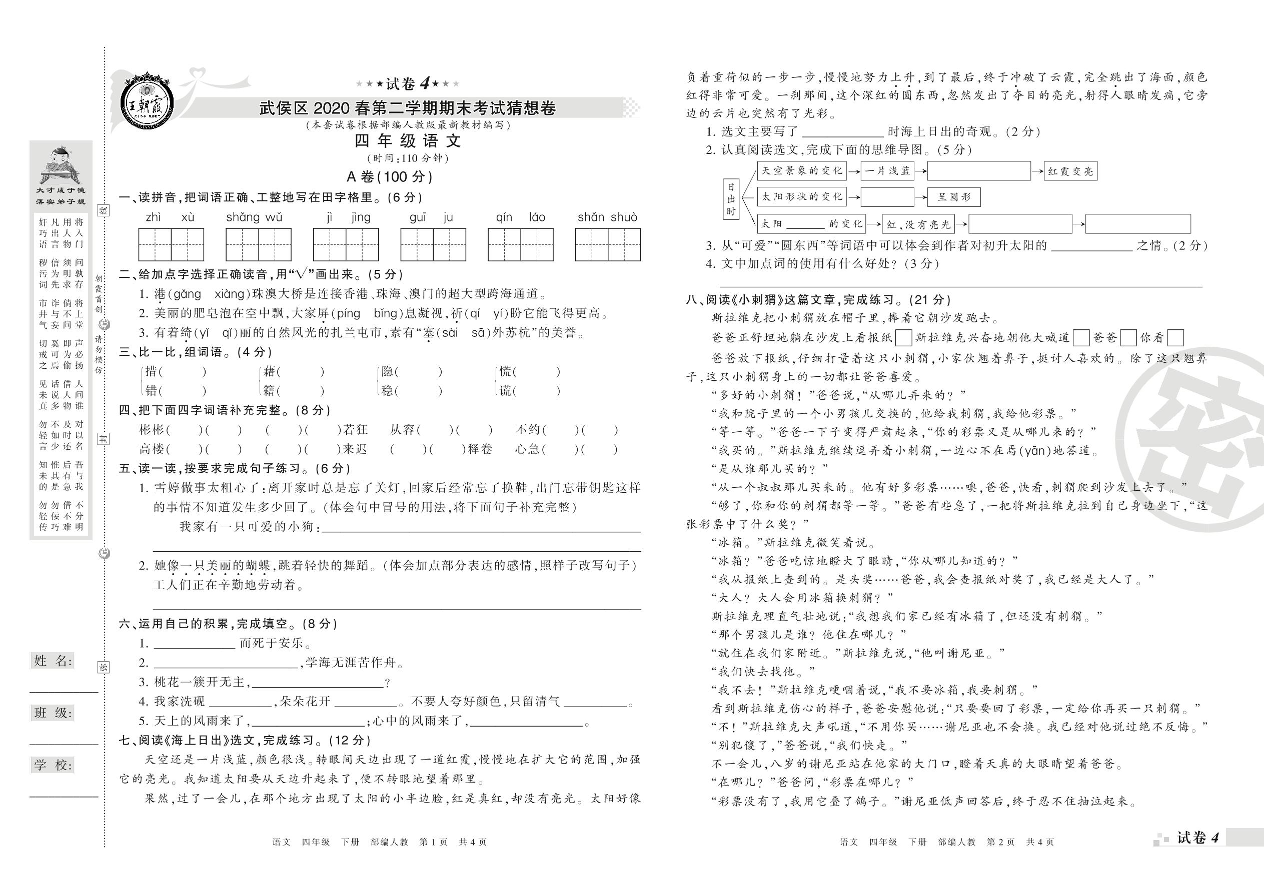 四年级语文人教版下册期末卷