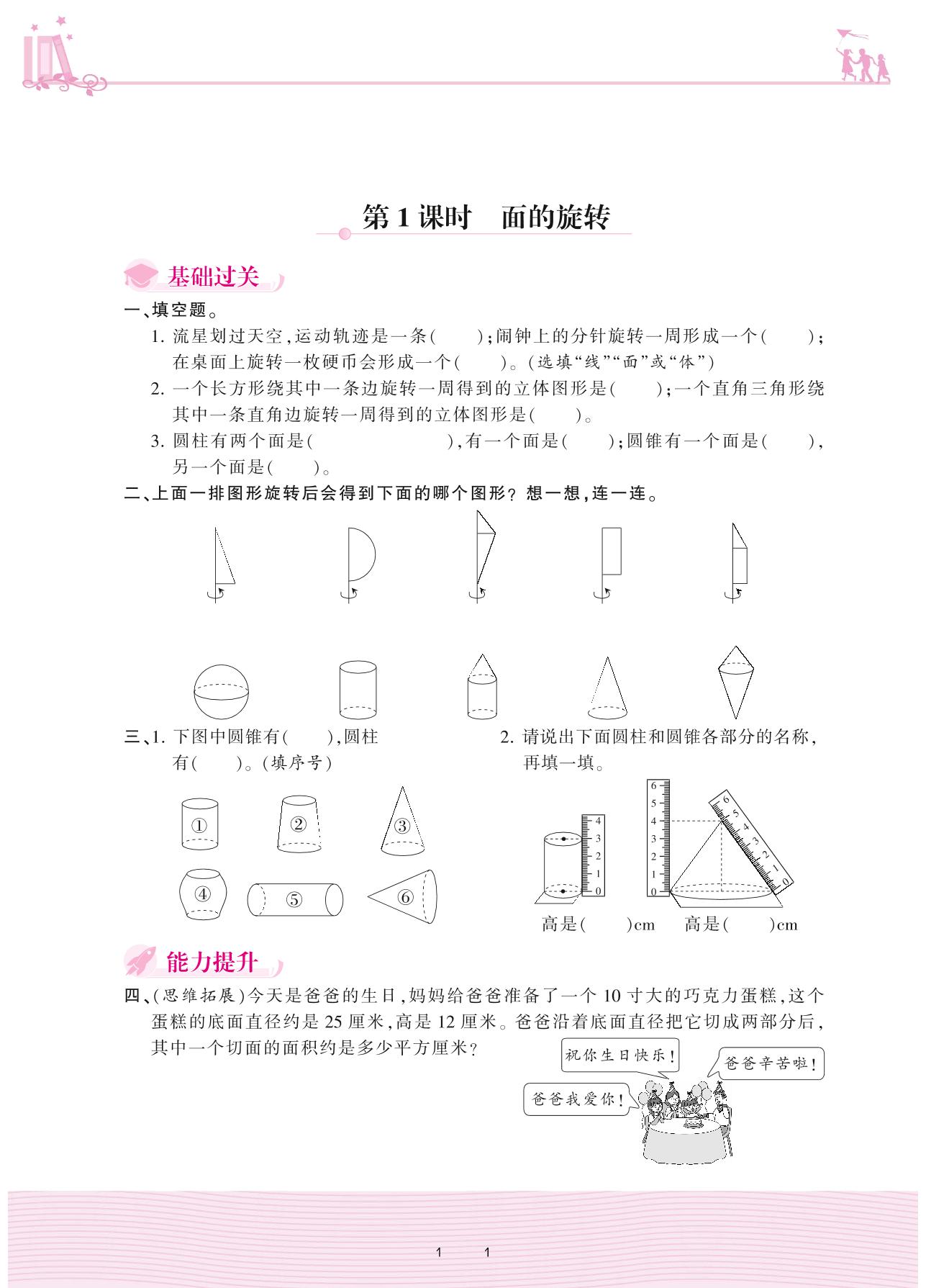 2021下册六年级数学北师版 一 圆柱与圆锥——第1课时 面的旋转