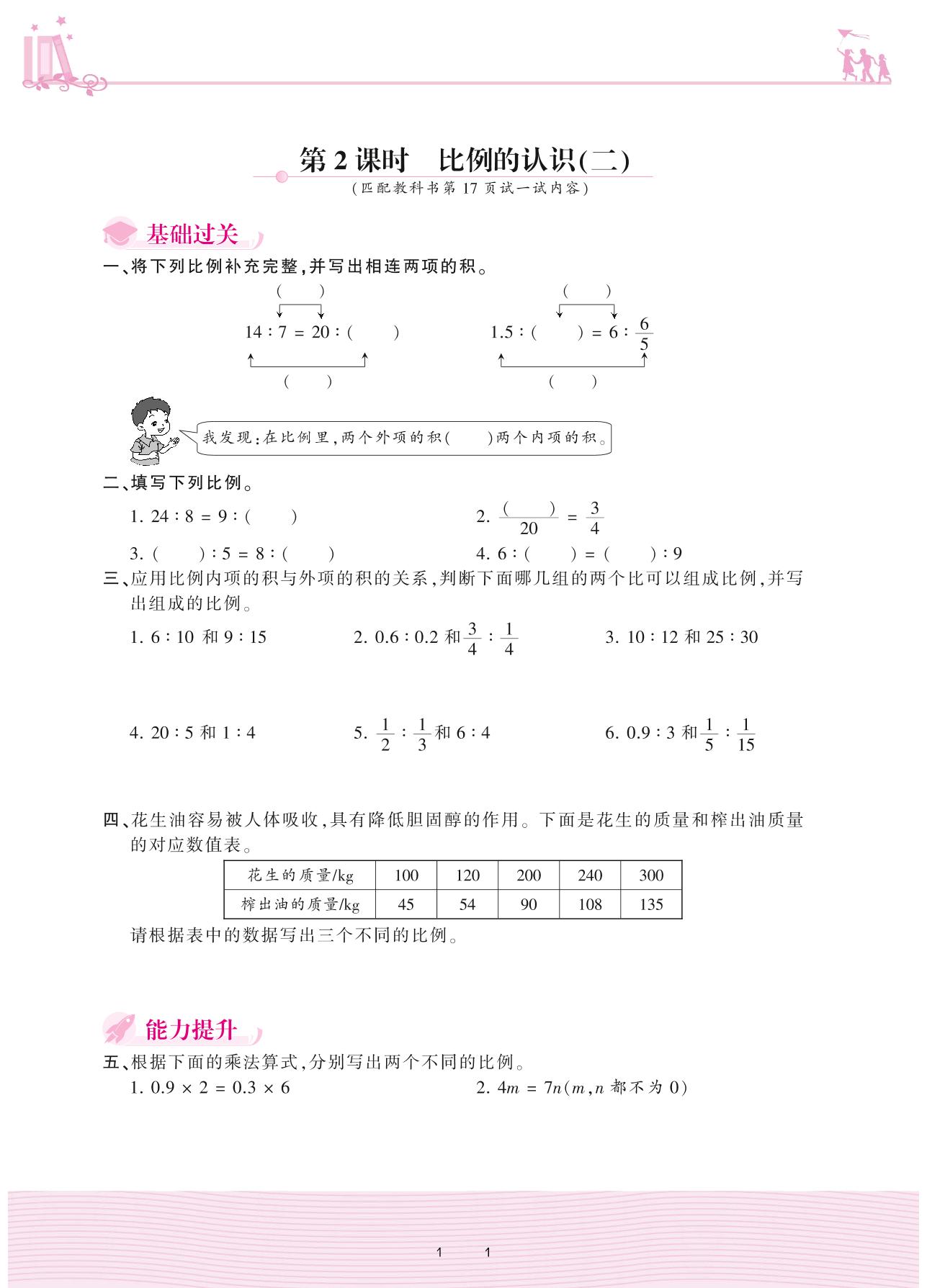 2021下册六年级数学北师版 二 比例——第2课时 比例的认识(二)