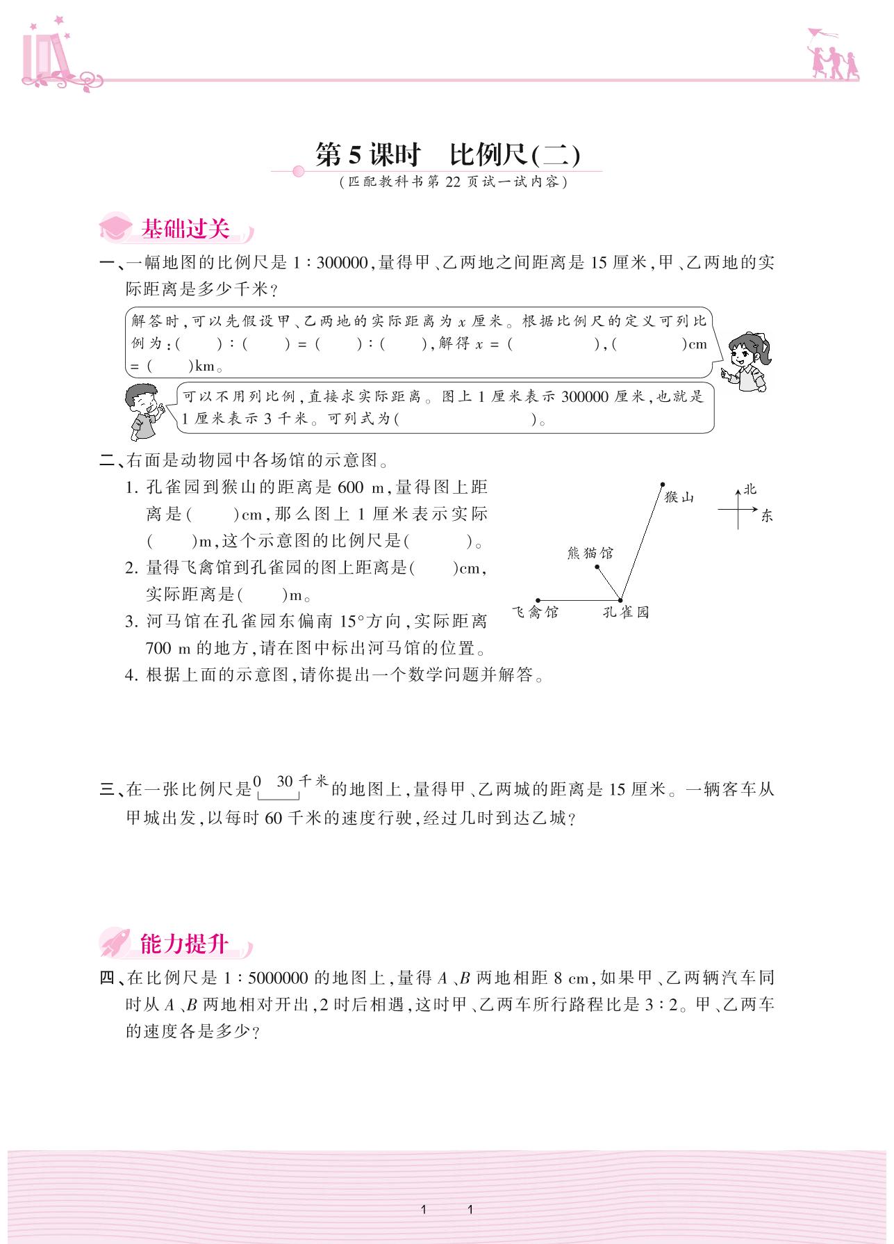2021下册六年级数学北师版 二 比例——第5课时 比例尺(二)