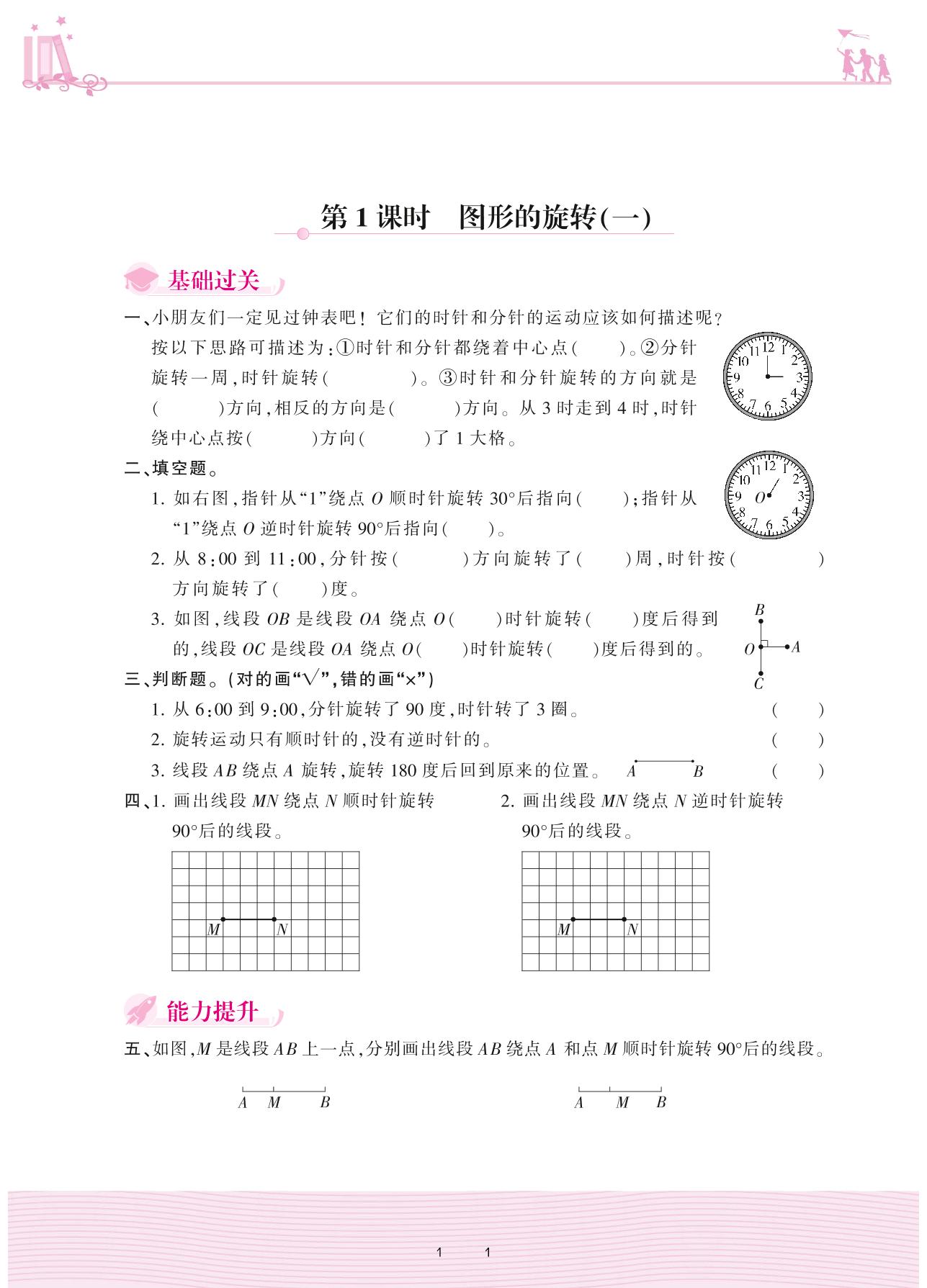 2021下册六年级数学北师版 三 图形的运动——第1课时 图形的旋转(一)