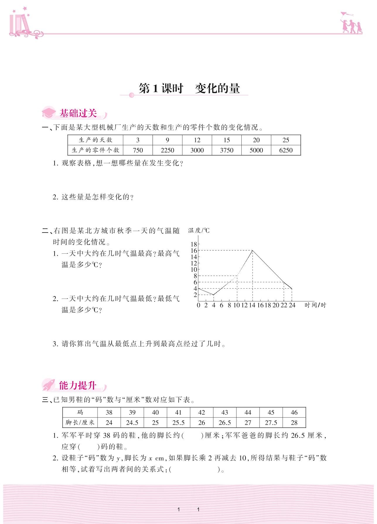 2021下册六年级数学北师版 四 正比例与反比例——第1课时 变化的量