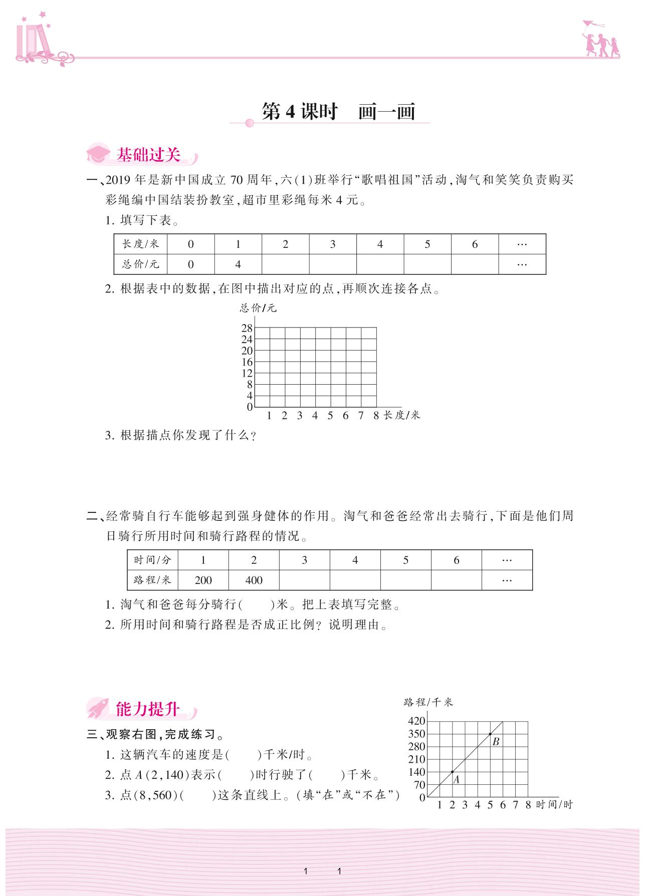 2021下册六年级数学北师版 四 正比例与反比例——第4课时 画一画