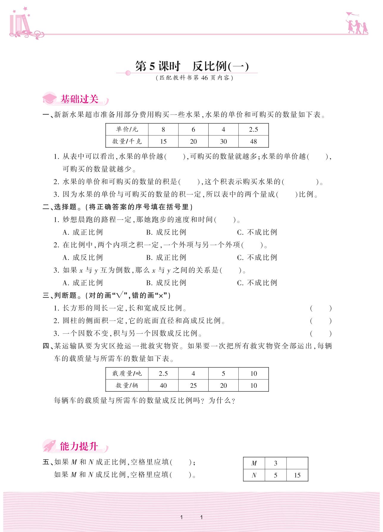 2021下册六年级数学北师版 四 正比例与反比例——第5课时 反比例(一)