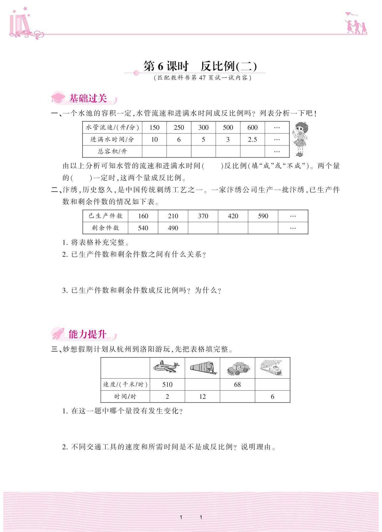 2021下册六年级数学北师版 四 正比例与反比例——第6课时 反比例(二)