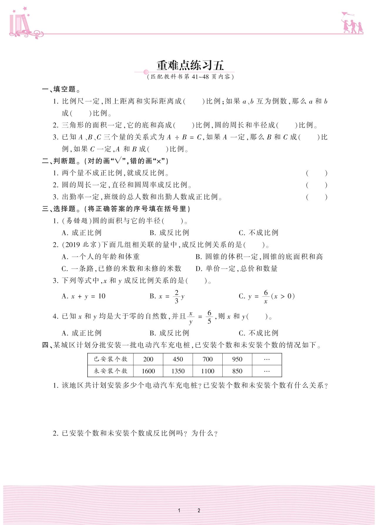 2021下册六年级数学北师版 四 正比例与反比例——重难点练习五