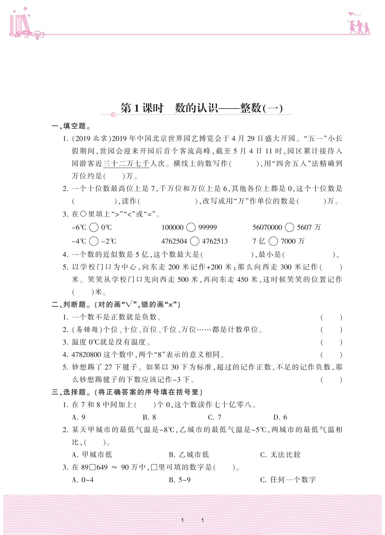 2021下册六年级数学北师版 总复习 1. 数与代数——第1课时 数的认识——整数(一)