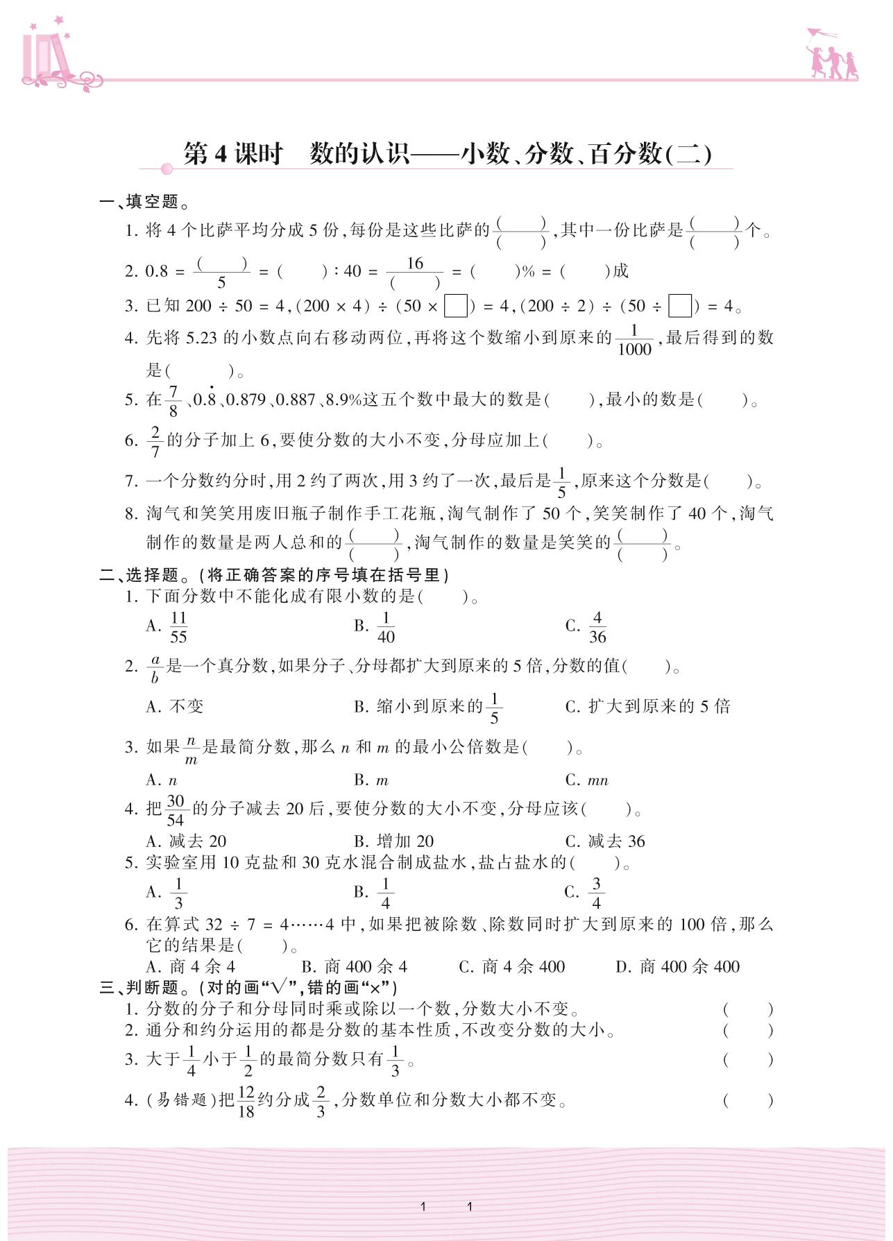 2021下册六年级数学北师版 总复习 1. 数与代数——第4课时 数的认识——小数、分数、百分数(二)