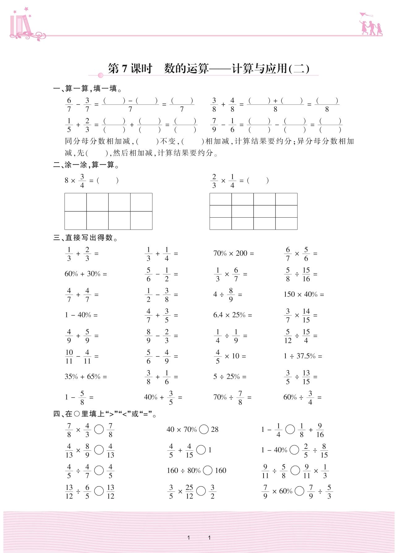 2021下册六年级数学北师版 总复习 1. 数与代数——第7课时 数的运算——计算与应用(二)