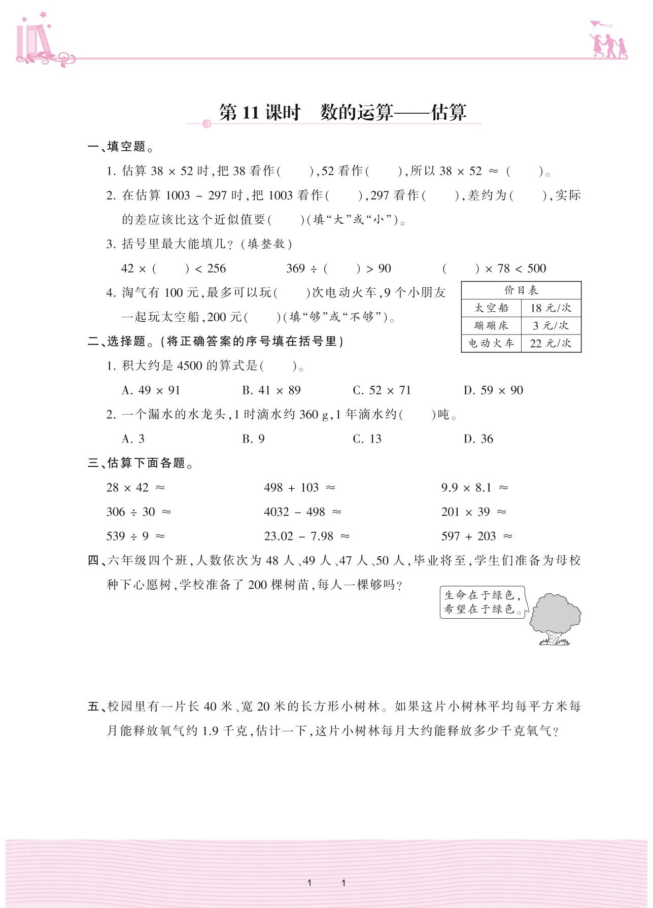 2021下册六年级数学北师版 总复习 1. 数与代数——第11课时 数的运算——估算