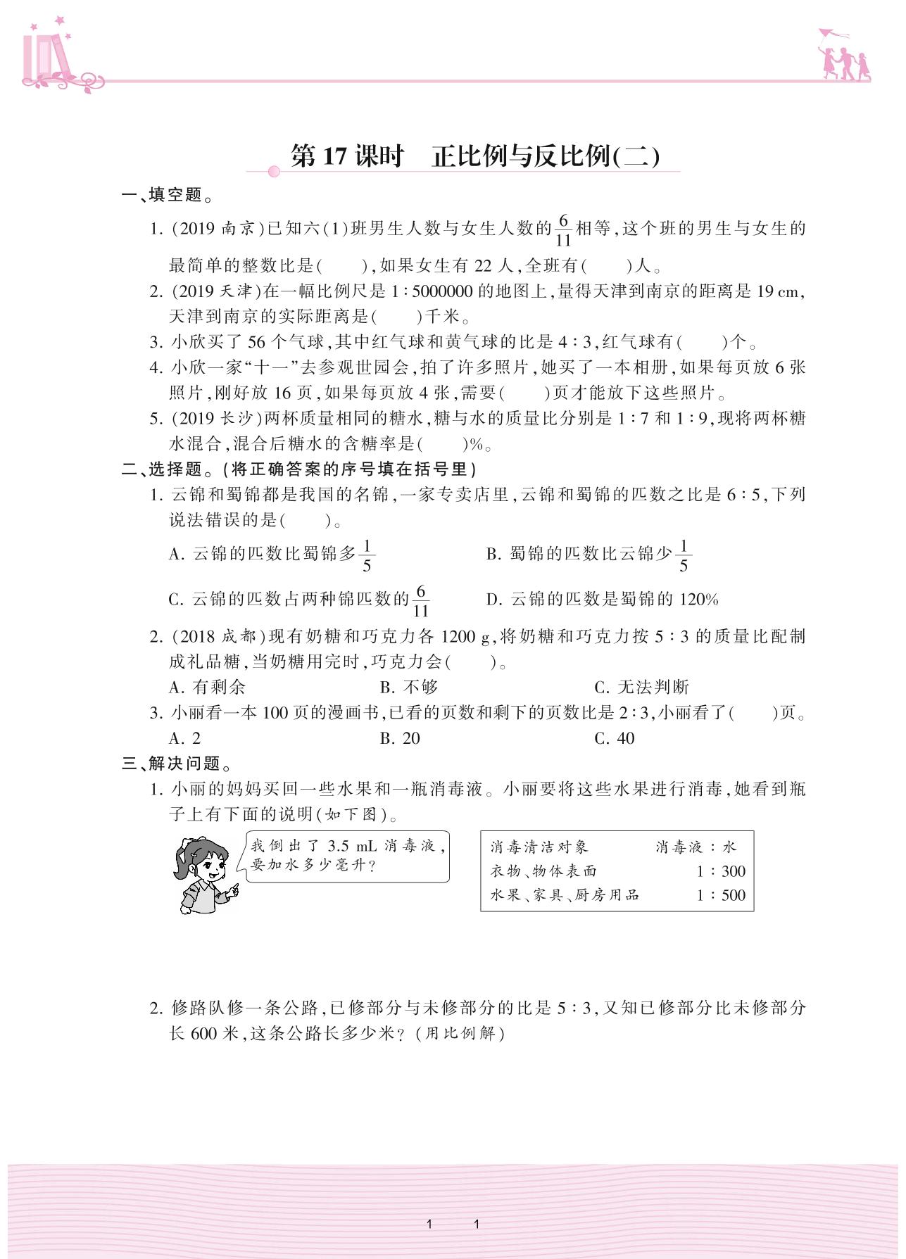 2021下册六年级数学北师版 总复习 1. 数与代数——第17课时 正比例与反比例(二)