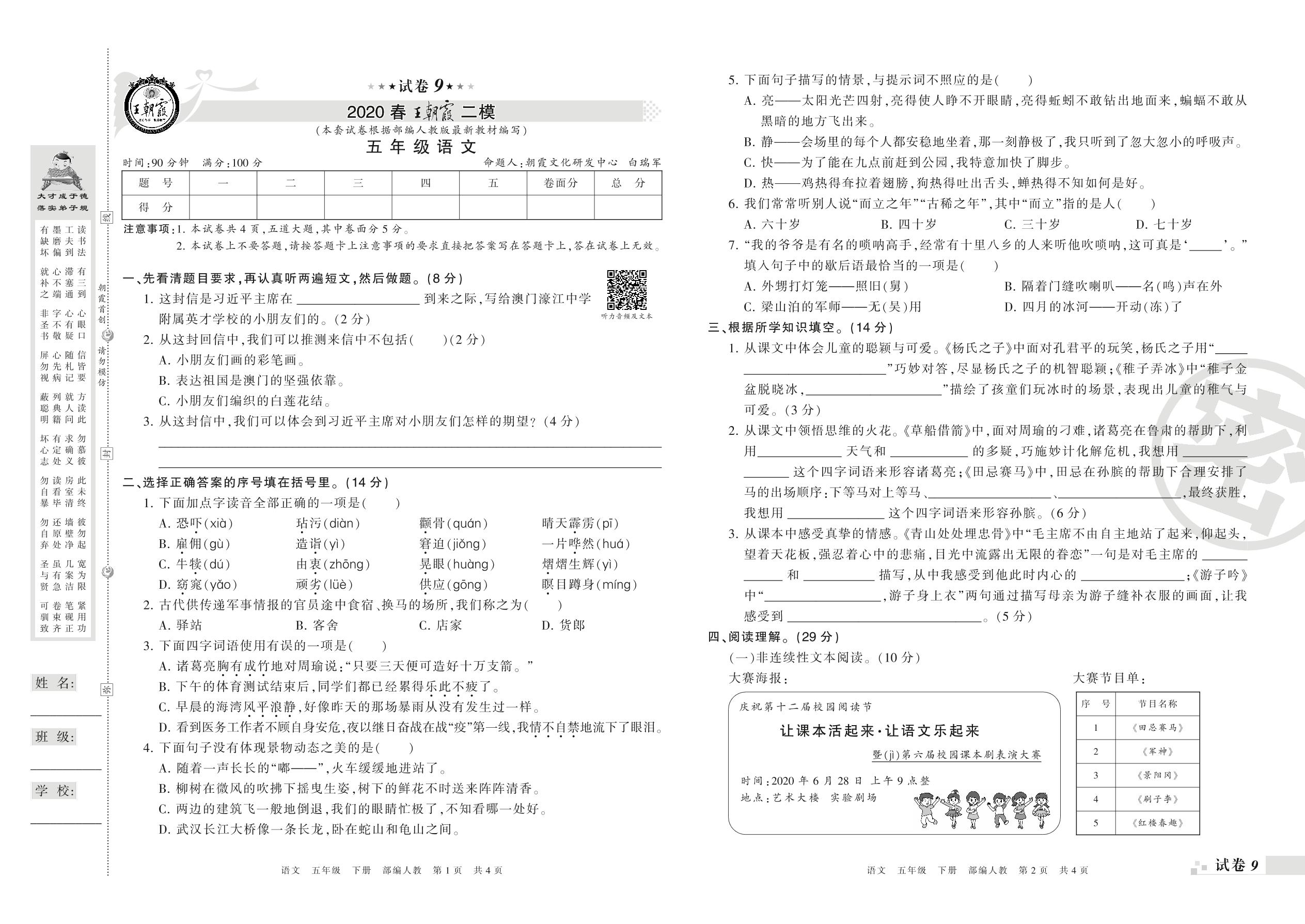 王朝霞期末模拟卷五年级下册语文(人教版)_R210801192500【9】