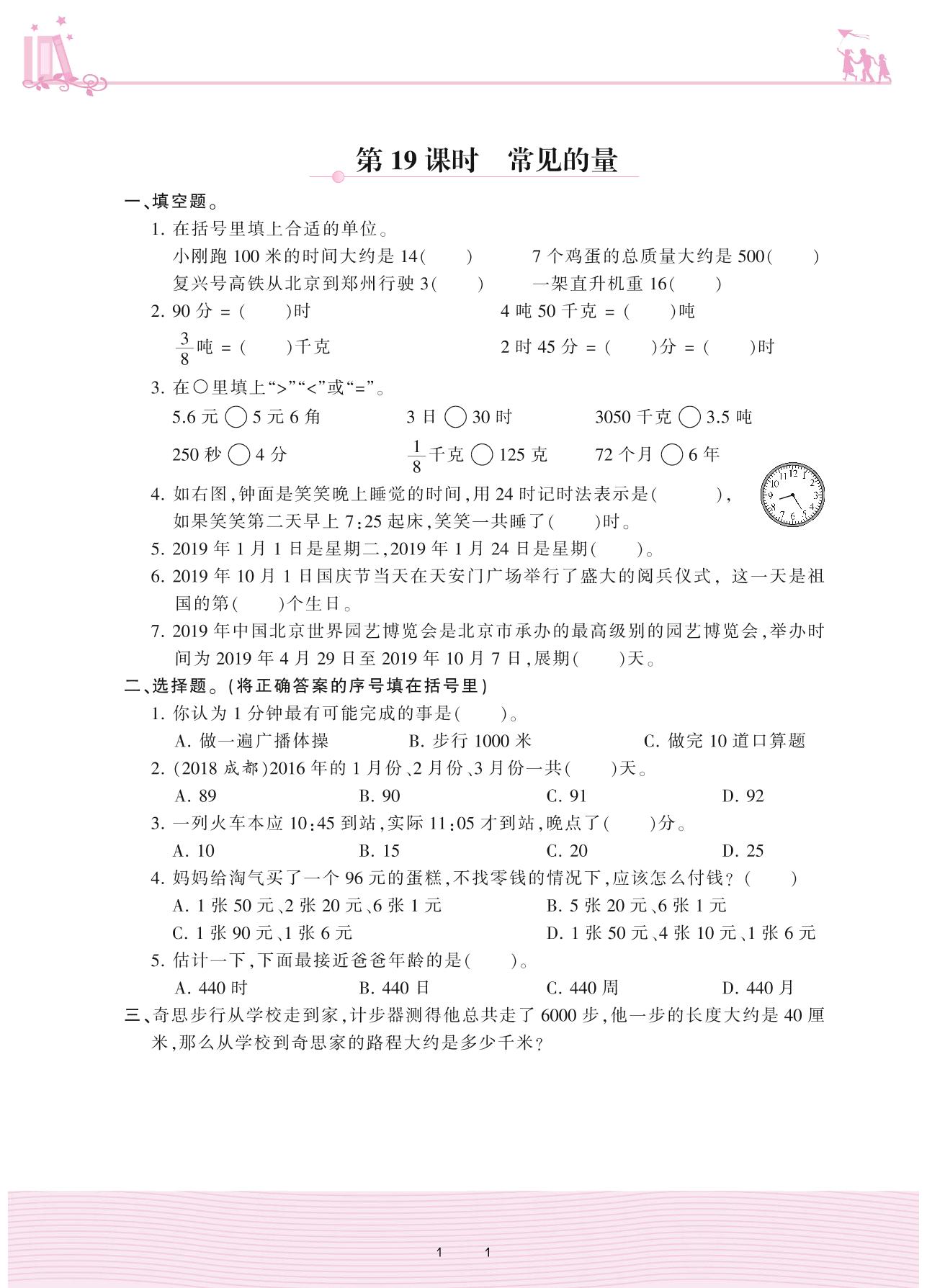 2021下册六年级数学北师版 总复习 1. 数与代数——第19课时 常见的量