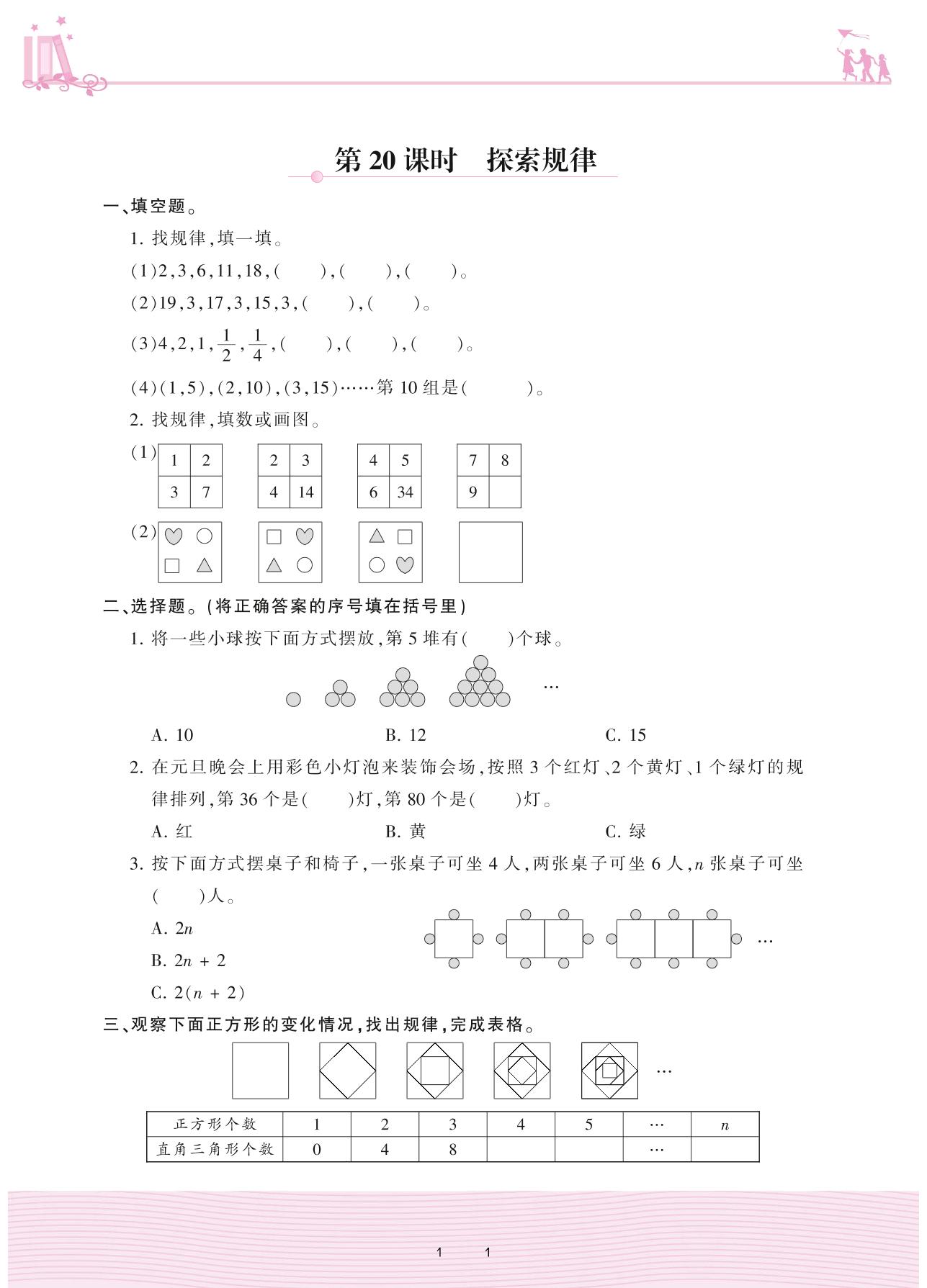 2021下册六年级数学北师版 总复习 1. 数与代数——第20课时 探索规律