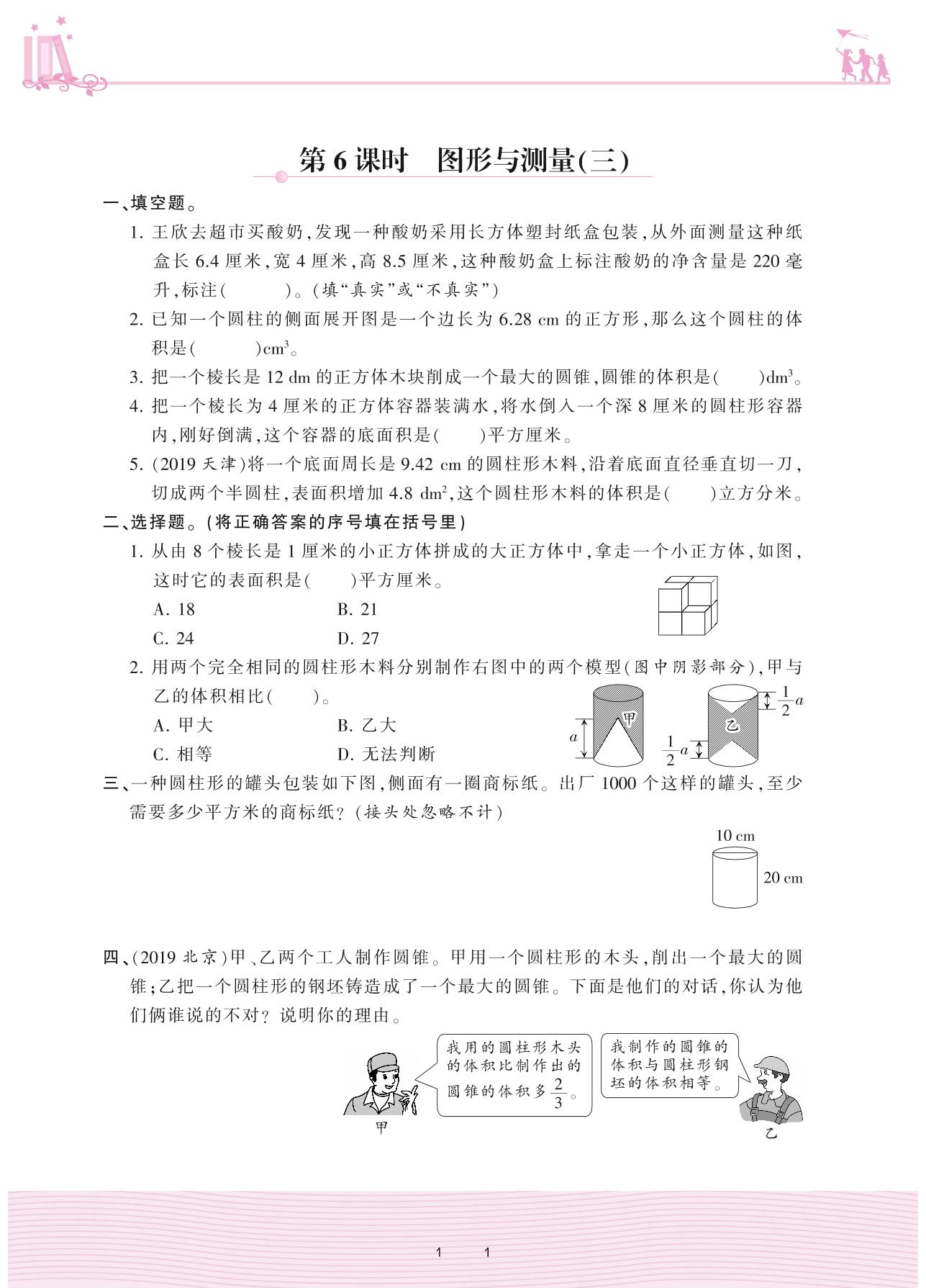 2021下册六年级数学北师版 总复习 2. 图形与几何——第6课时 图形与测量(三)