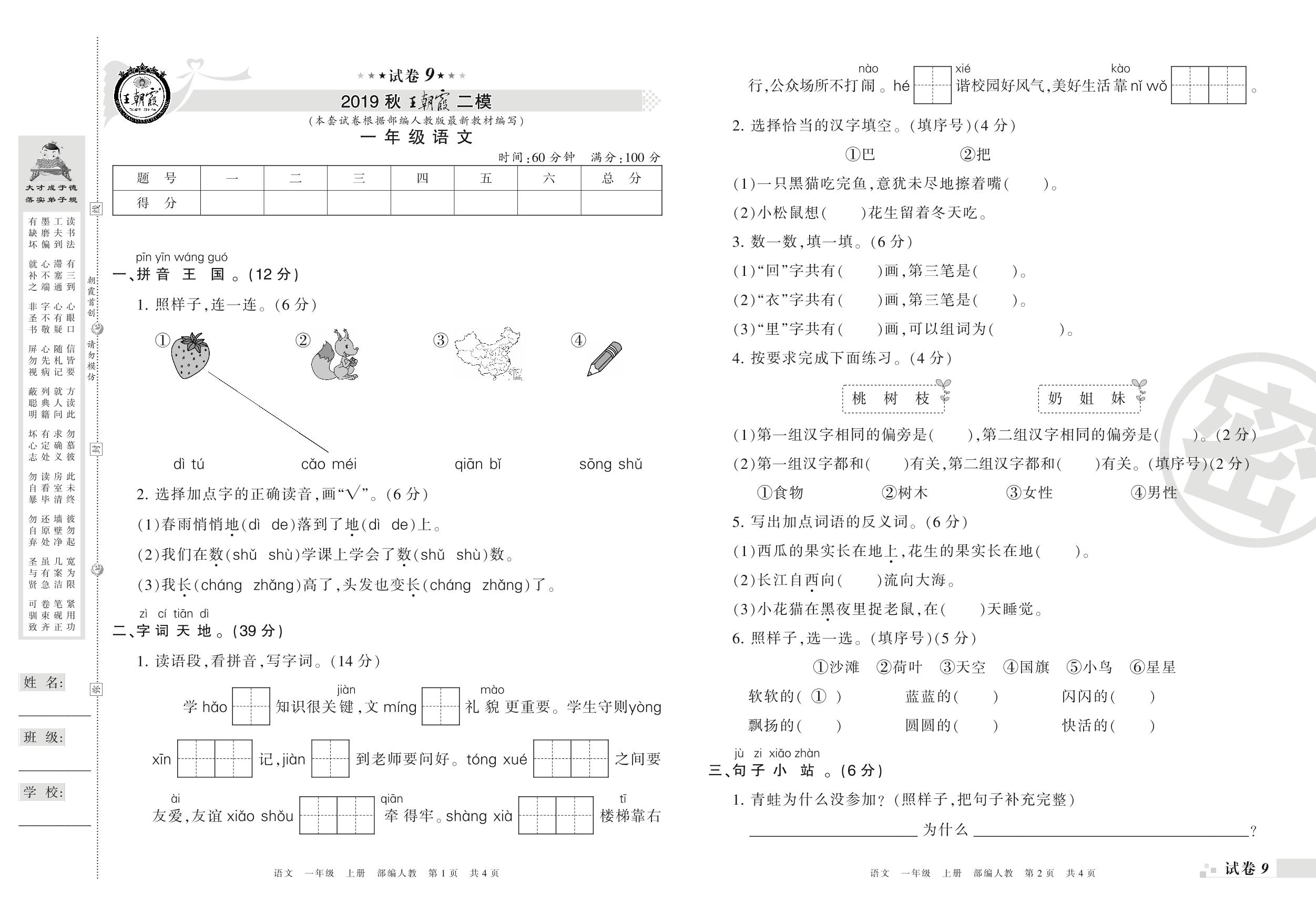 王朝霞期末模拟卷一年级上册语文(人教版)_R210731181120【9】