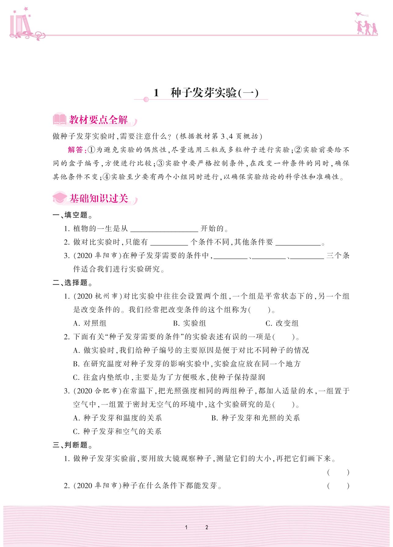 2020上册五年级科学教科版 第一单元 生物与环境——1 种子发芽实验(一)