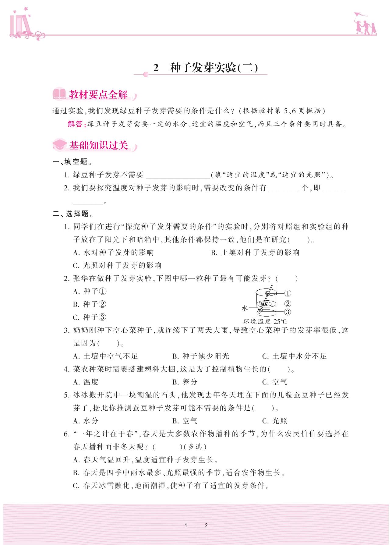 2020上册五年级科学教科版 第一单元 生物与环境——2 种子发芽实验(二)