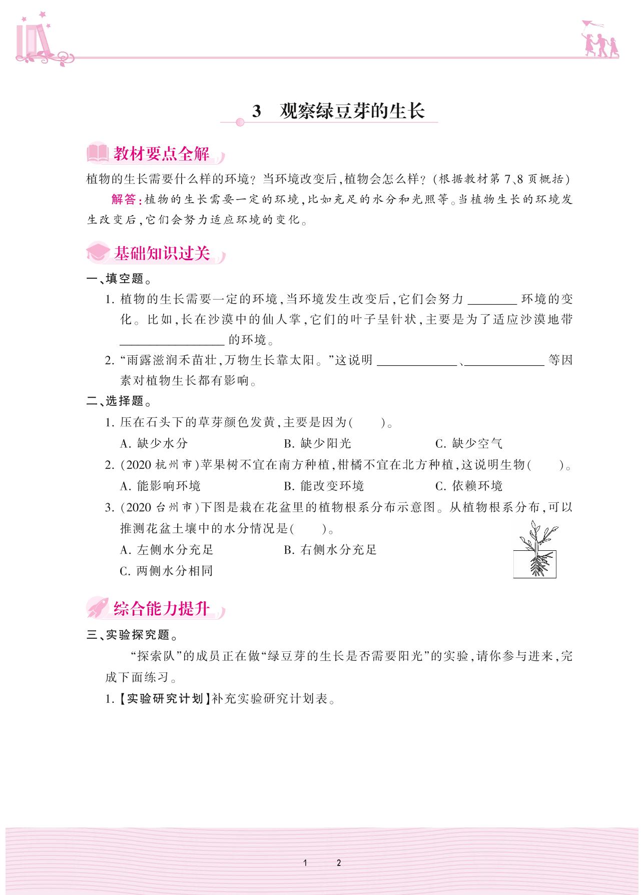 2020上册五年级科学教科版 第一单元 生物与环境——3 观察绿豆芽的生长