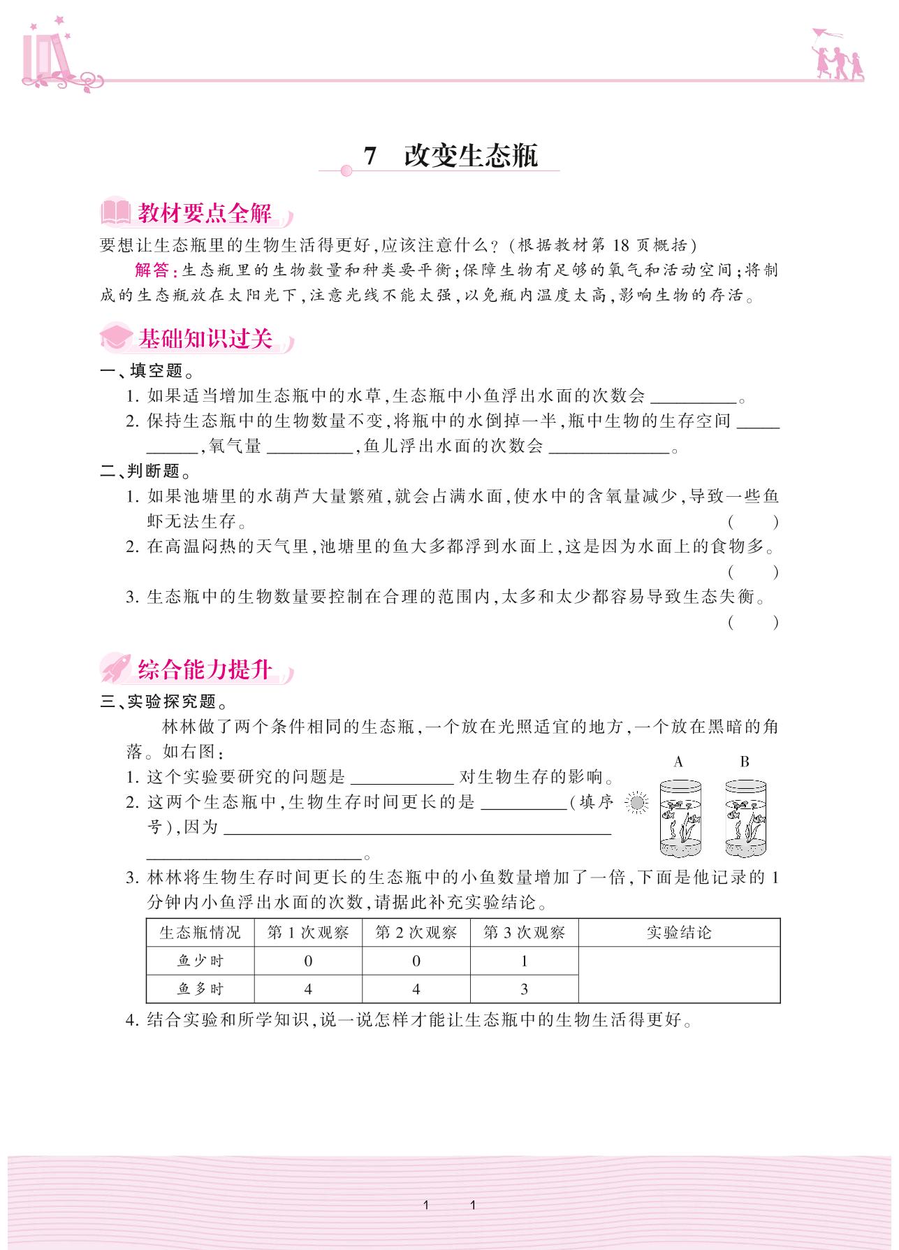 2020上册五年级科学教科版 第一单元 生物与环境——7 改变生态瓶