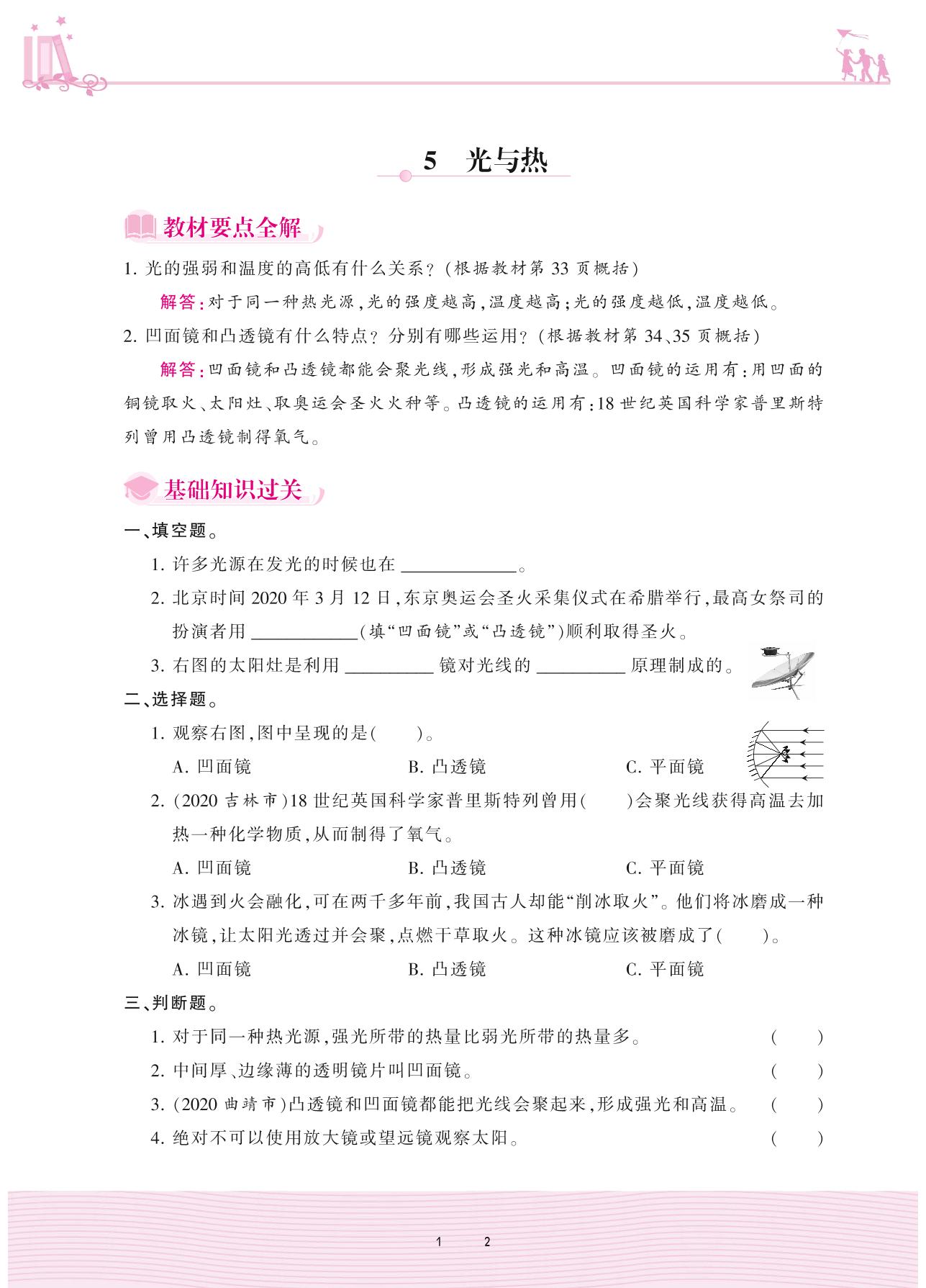 2020上册五年级科学教科版 第二单元 光——5 光与热