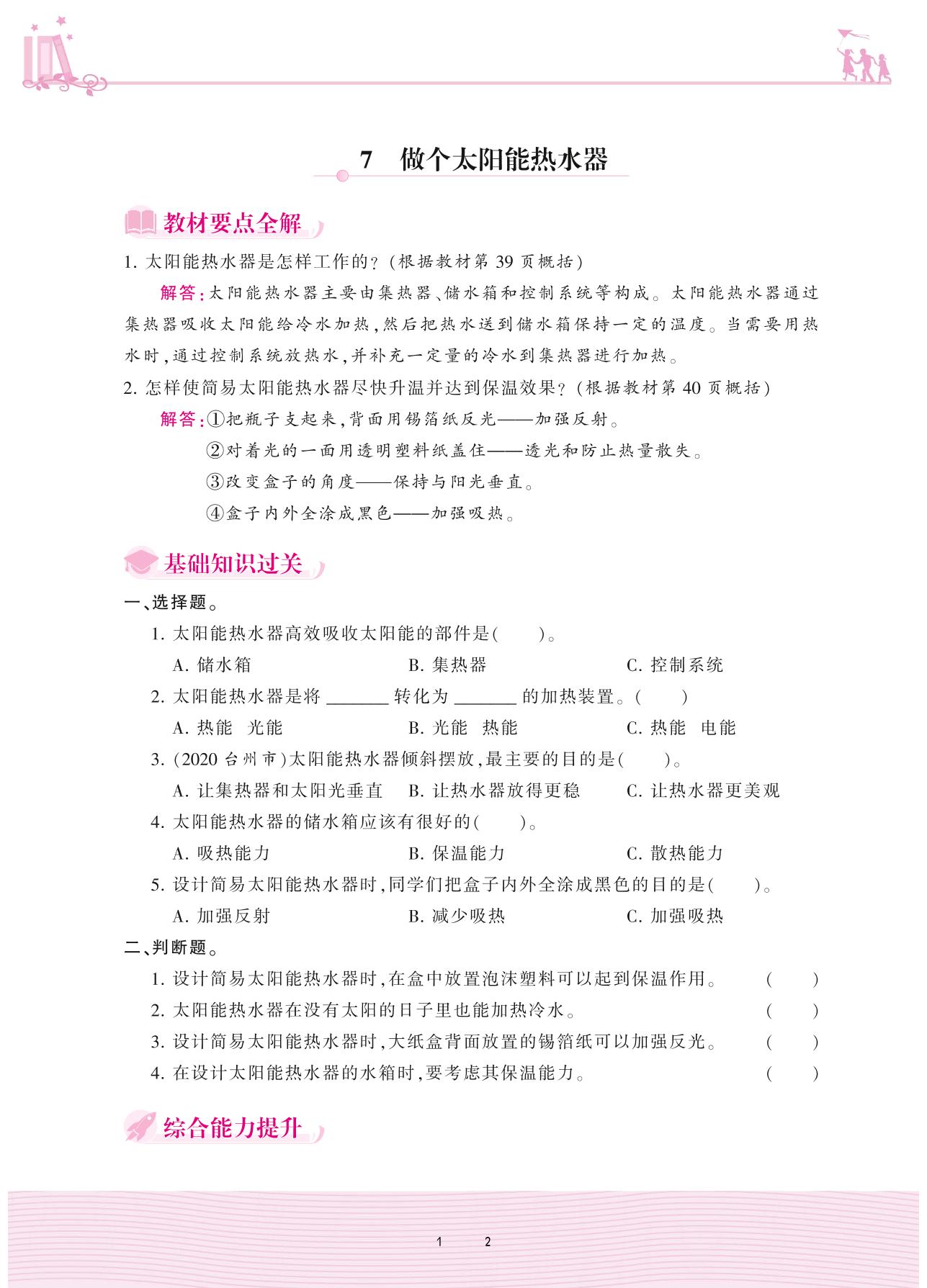 2020上册五年级科学教科版 第二单元 光——7 做个太阳能热水器