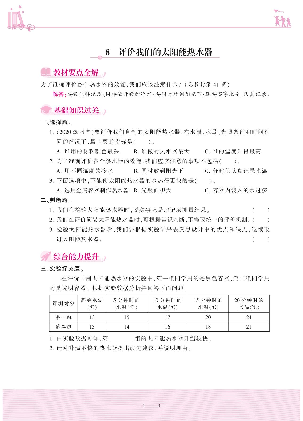 2020上册五年级科学教科版 第二单元 光——8 评价我们的太阳能热水器