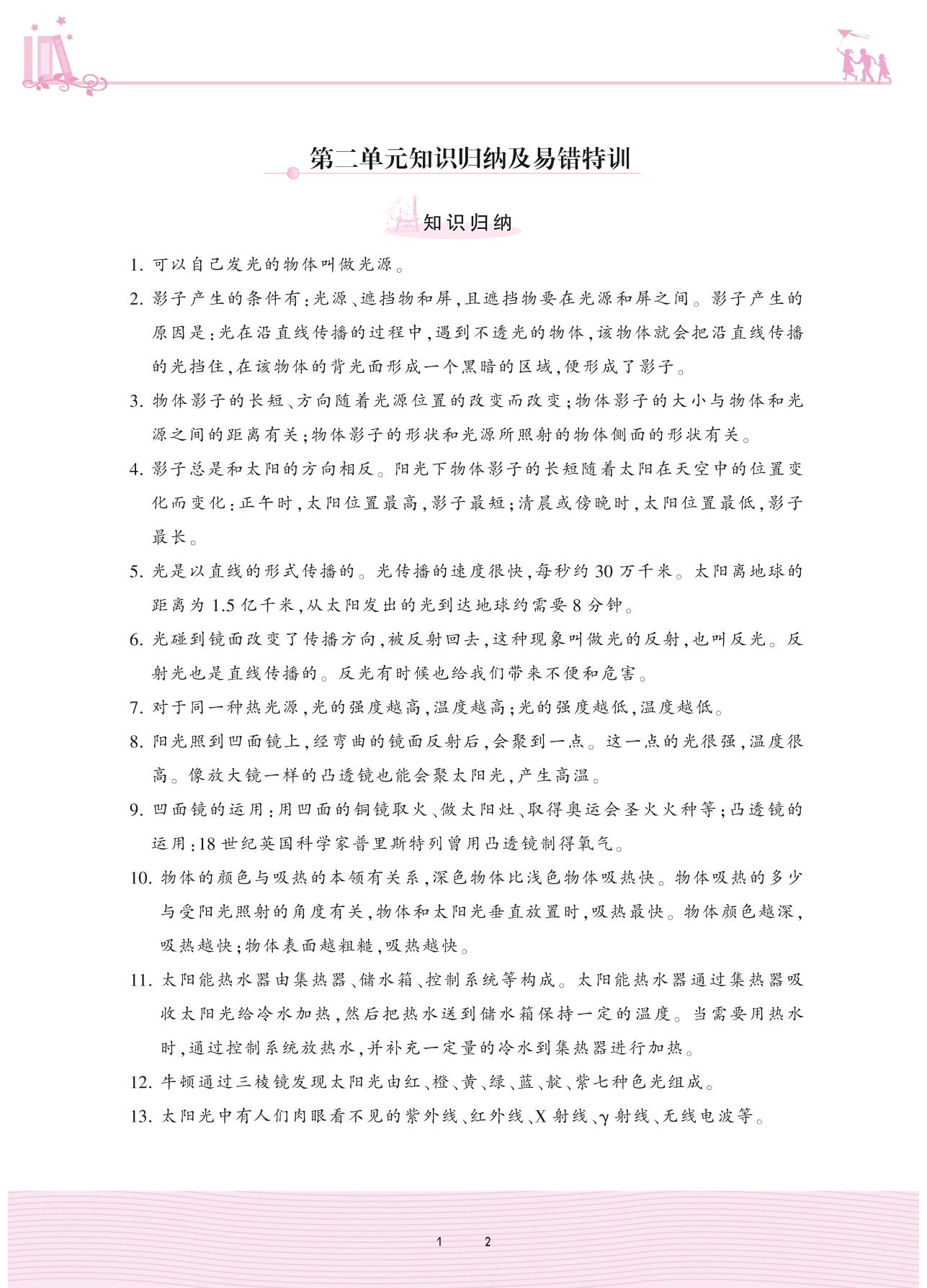2020上册五年级科学教科版 第二单元知识归纳及易错特训