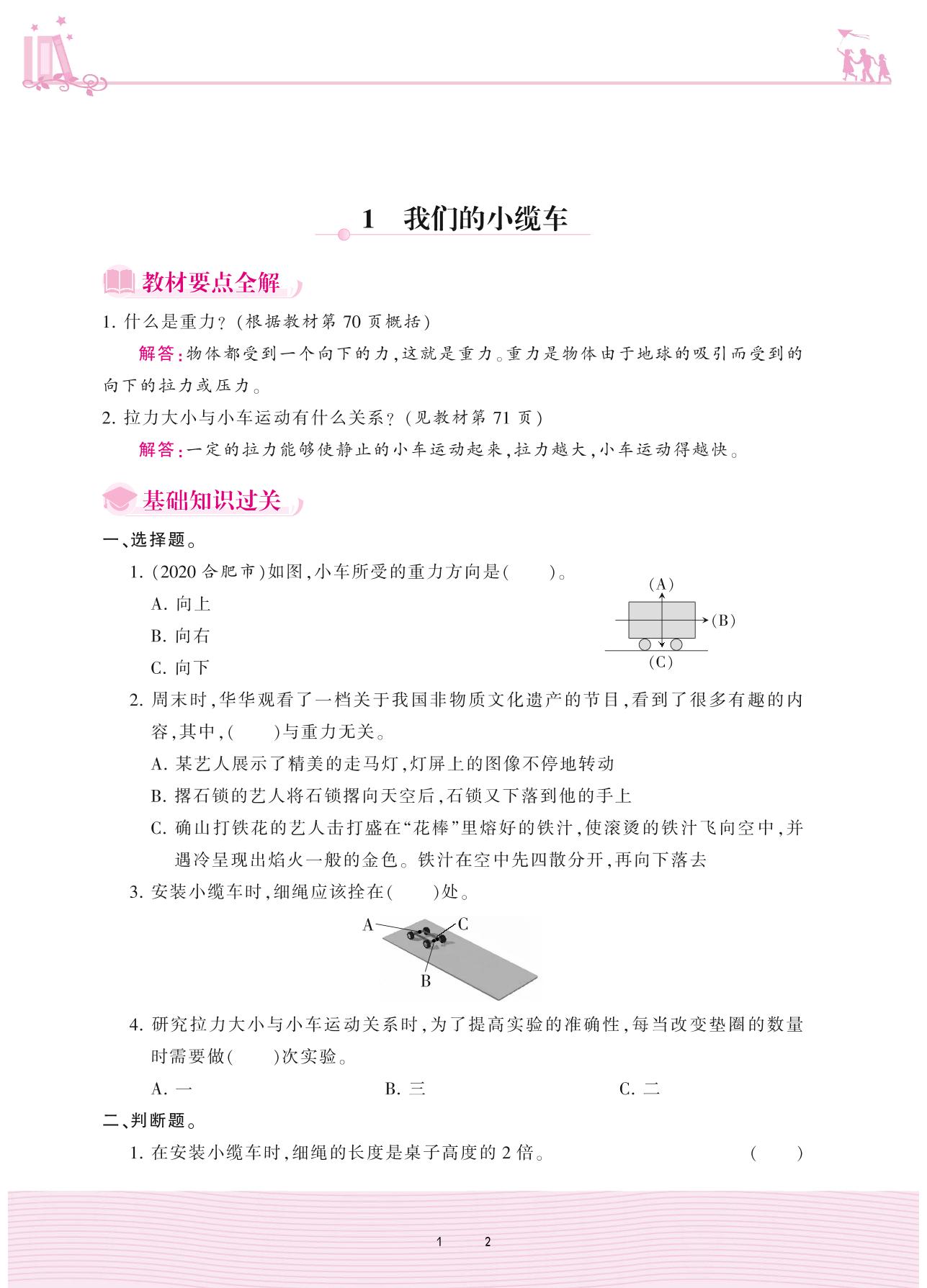 2020上册五年级科学教科版 第四单元 运动和力——1 我们的小缆车