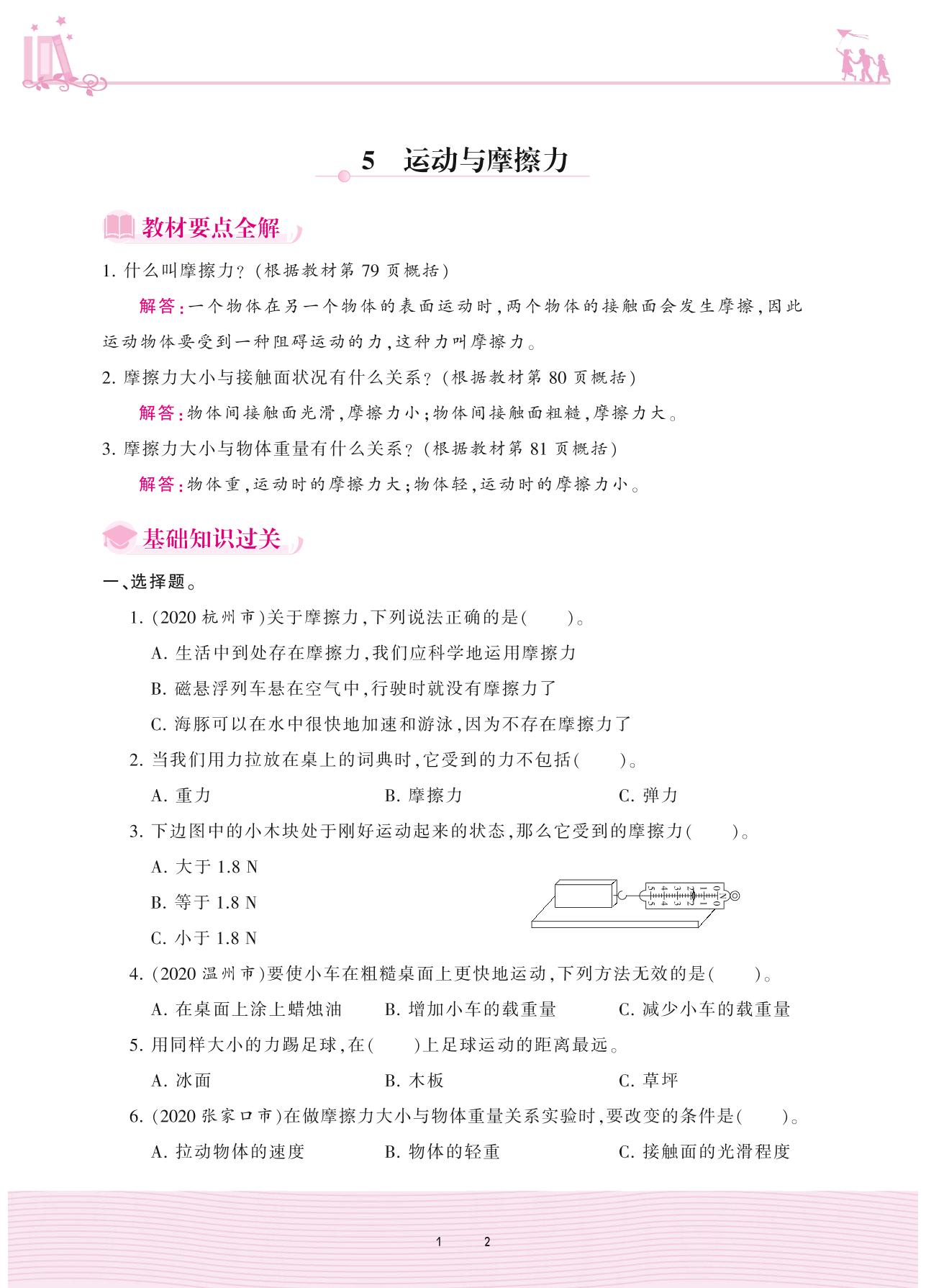 2020上册五年级科学教科版 第四单元 运动和力——5 运动与摩擦力
